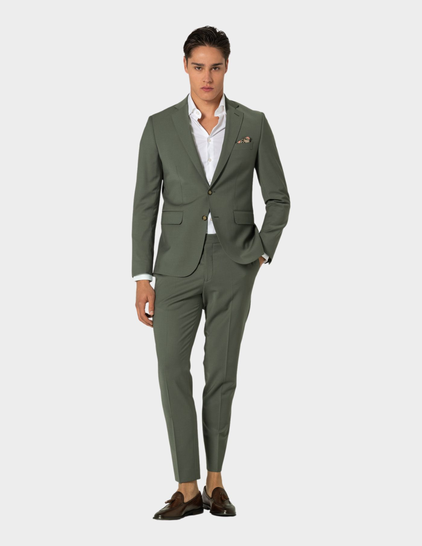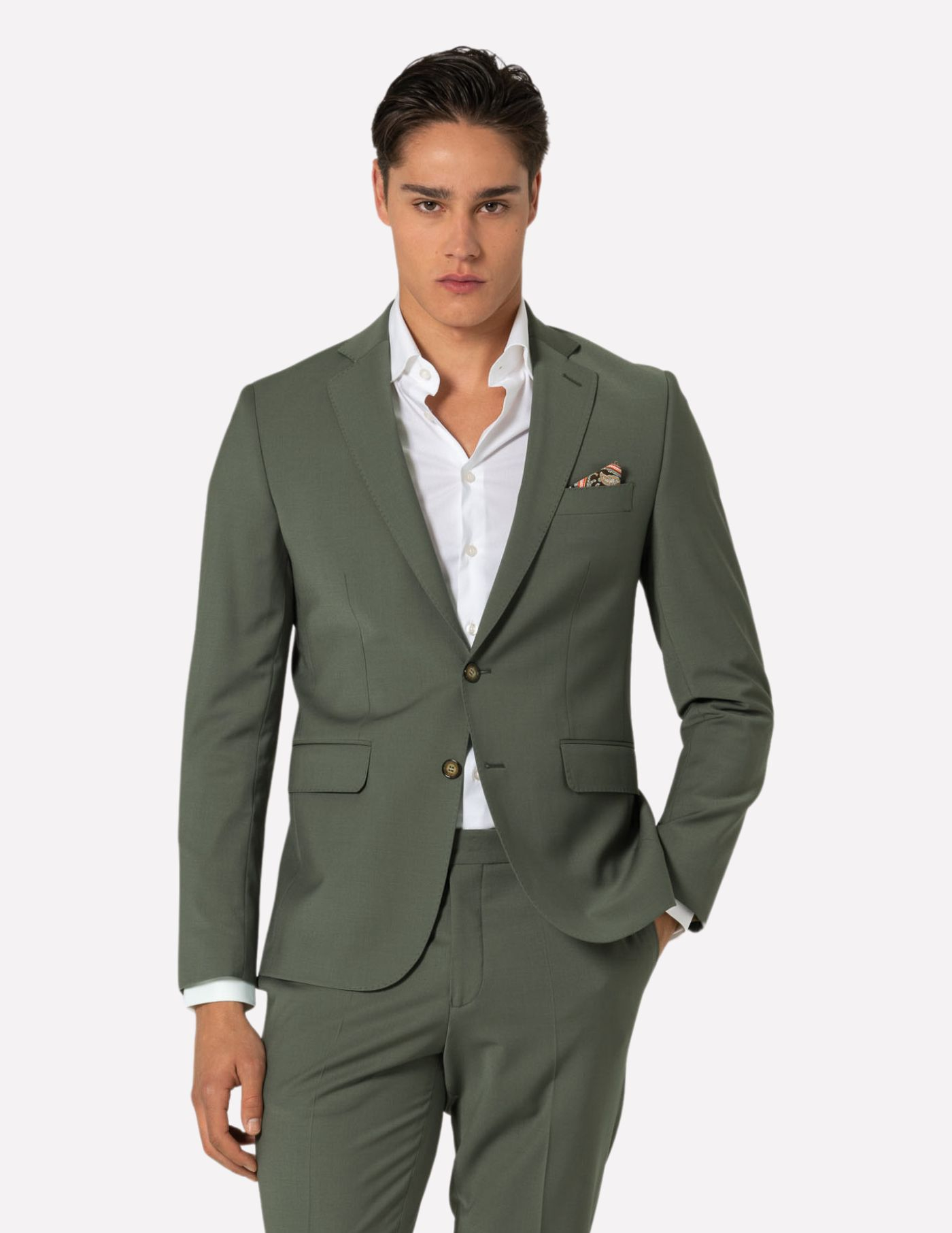 Fato de duas peças (blazer e calça). Uma peça indispensável em qualquer guarda-roupa, seja para uma ocasião especial ou para a rotina de trabalho. Este modelo é clássico, com blazer de dois botões com detalhe de costura picotada (pick stitch), e possui um design elegante e moderno. É leve e confortável de usar, e composto por materiais que garantem um aspeto estético irrepreensível e liberdade de movimentos. Finalizado com acabamento non-iron, não sendo necessário passar a ferro para que se mantenha elegante.