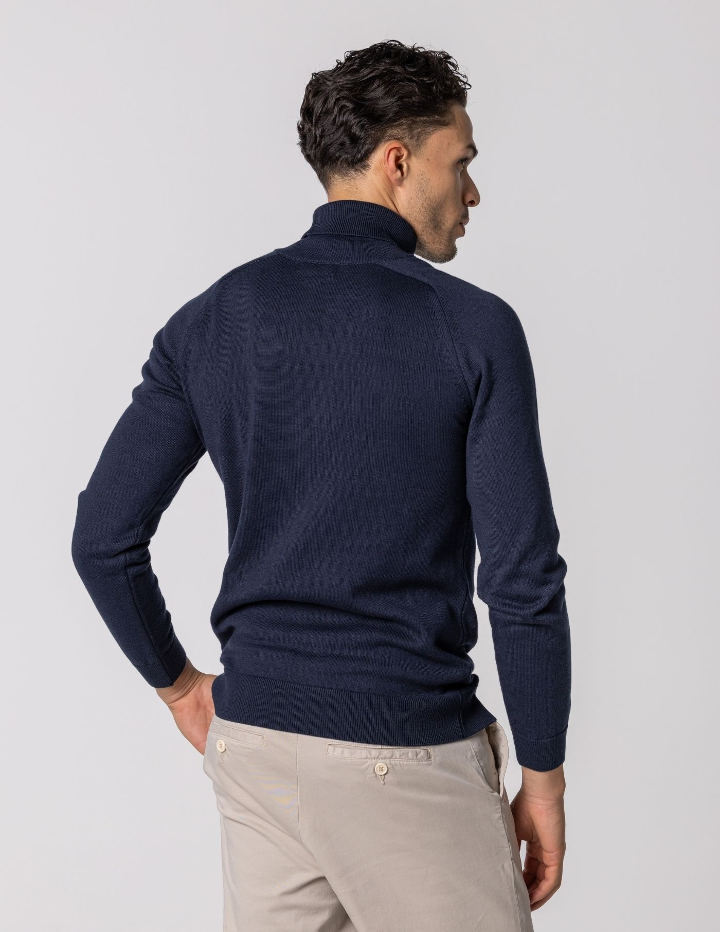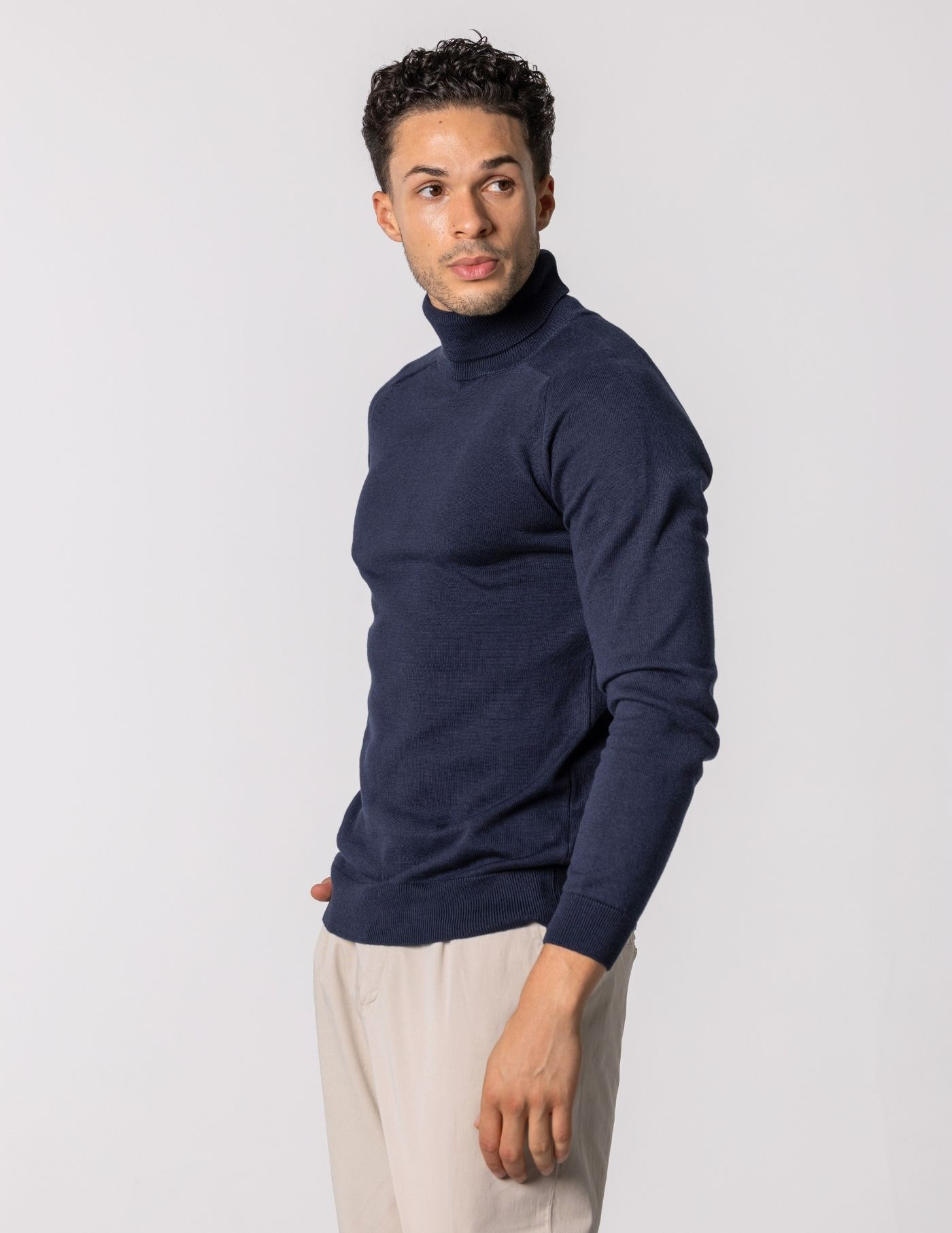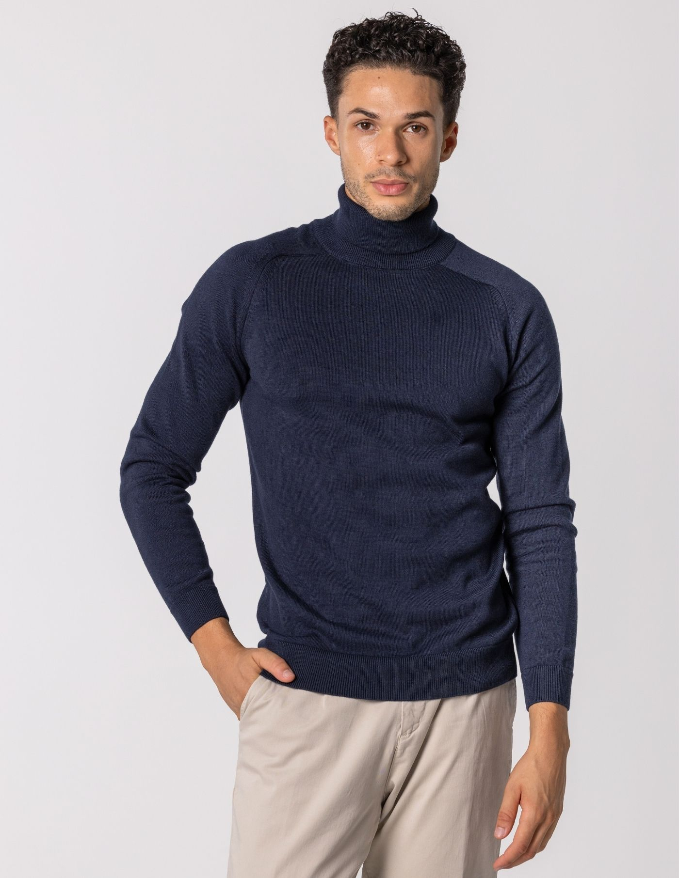 A peça fundamental para os dias mais frios. Gola alta lisa confecionada 67% de Liocel e 33% de algodão, garantindo alto conforto e liberdade de movimentos. A camisola regula a temperatura e tem um toque aconchegante, tornando-se numa peça padrão de um guarda-roupa cde inverno. Combina perfeitamente com um sobretudo ou casaco de penas.