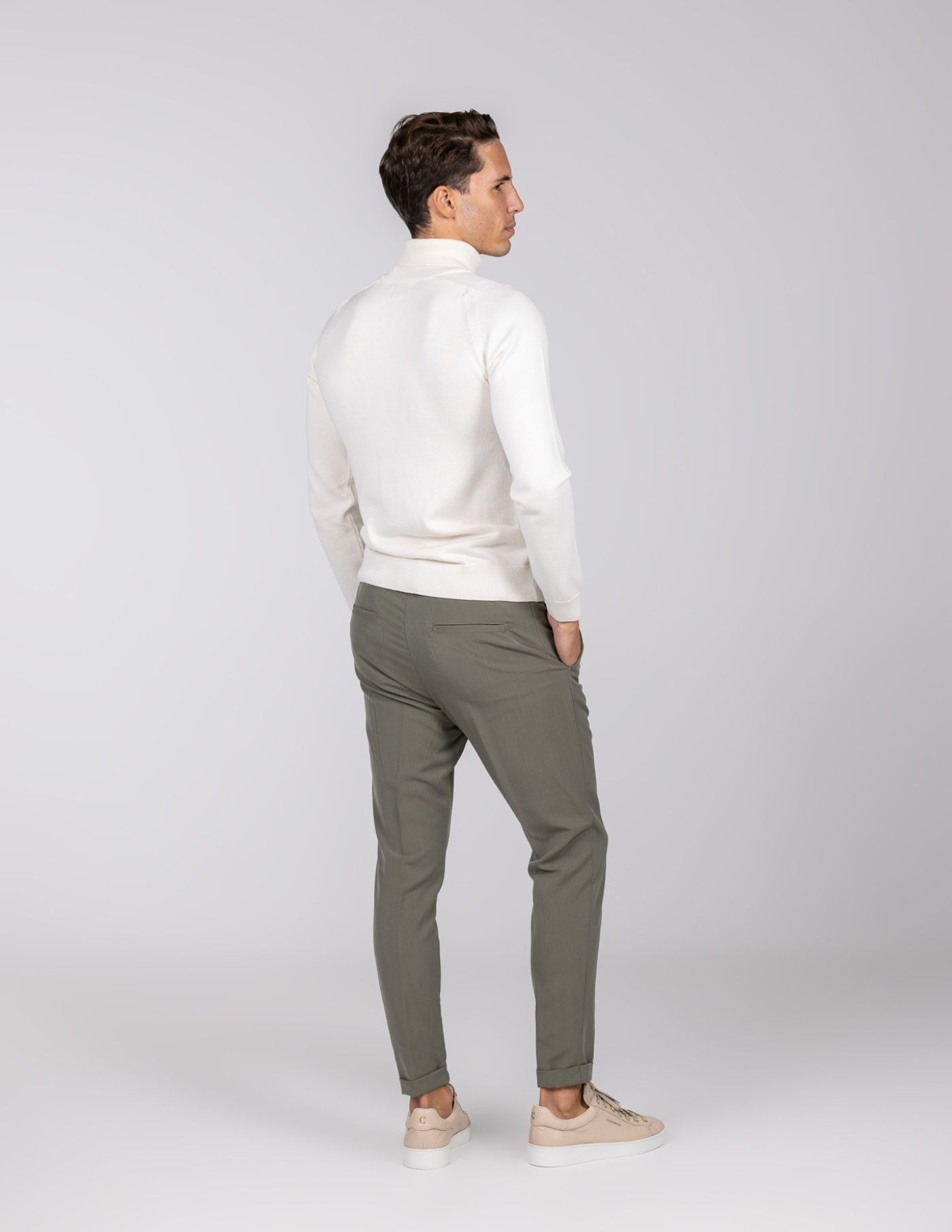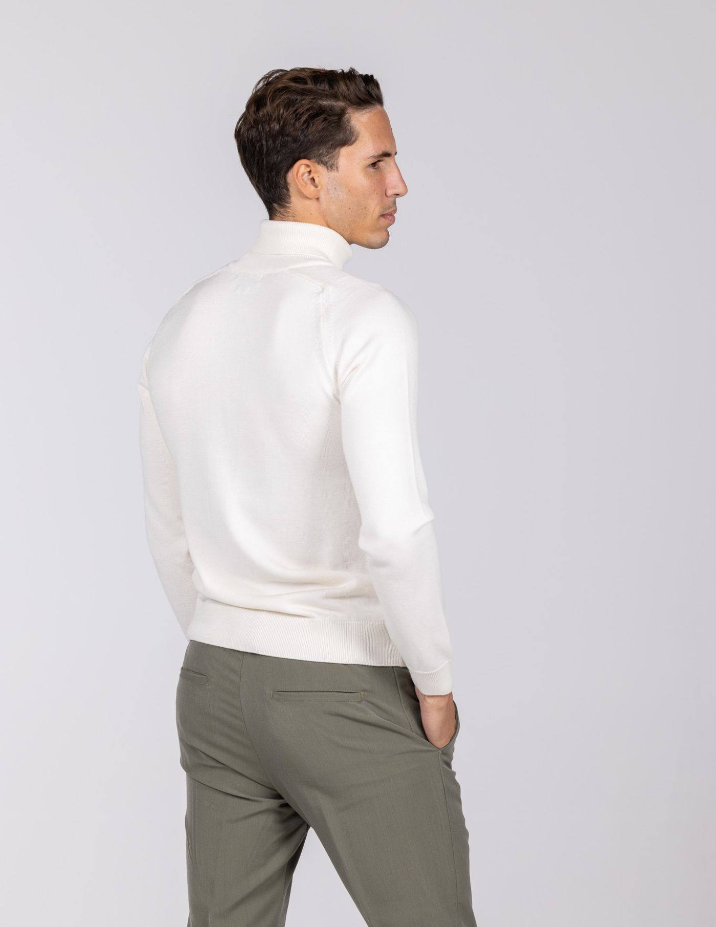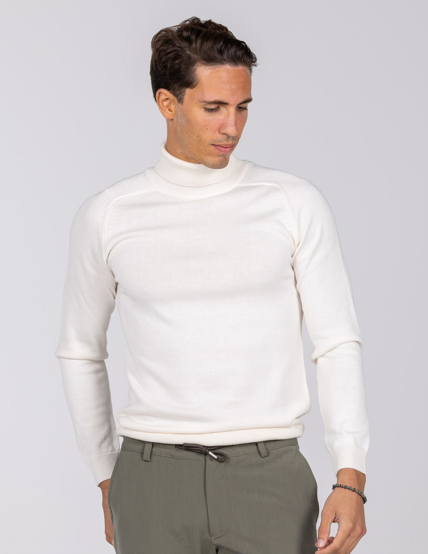 A peça fundamental para os dias mais frios. Gola alta lisa confecionada 67% de Liocel e 33% de algodão, garantindo alto conforto e liberdade de movimentos. A camisola regula a temperatura e tem um toque aconchegante, tornando-se numa peça padrão de um guarda-roupa de inverno. Combina perfeitamente com um sobretudo ou casaco de penas.