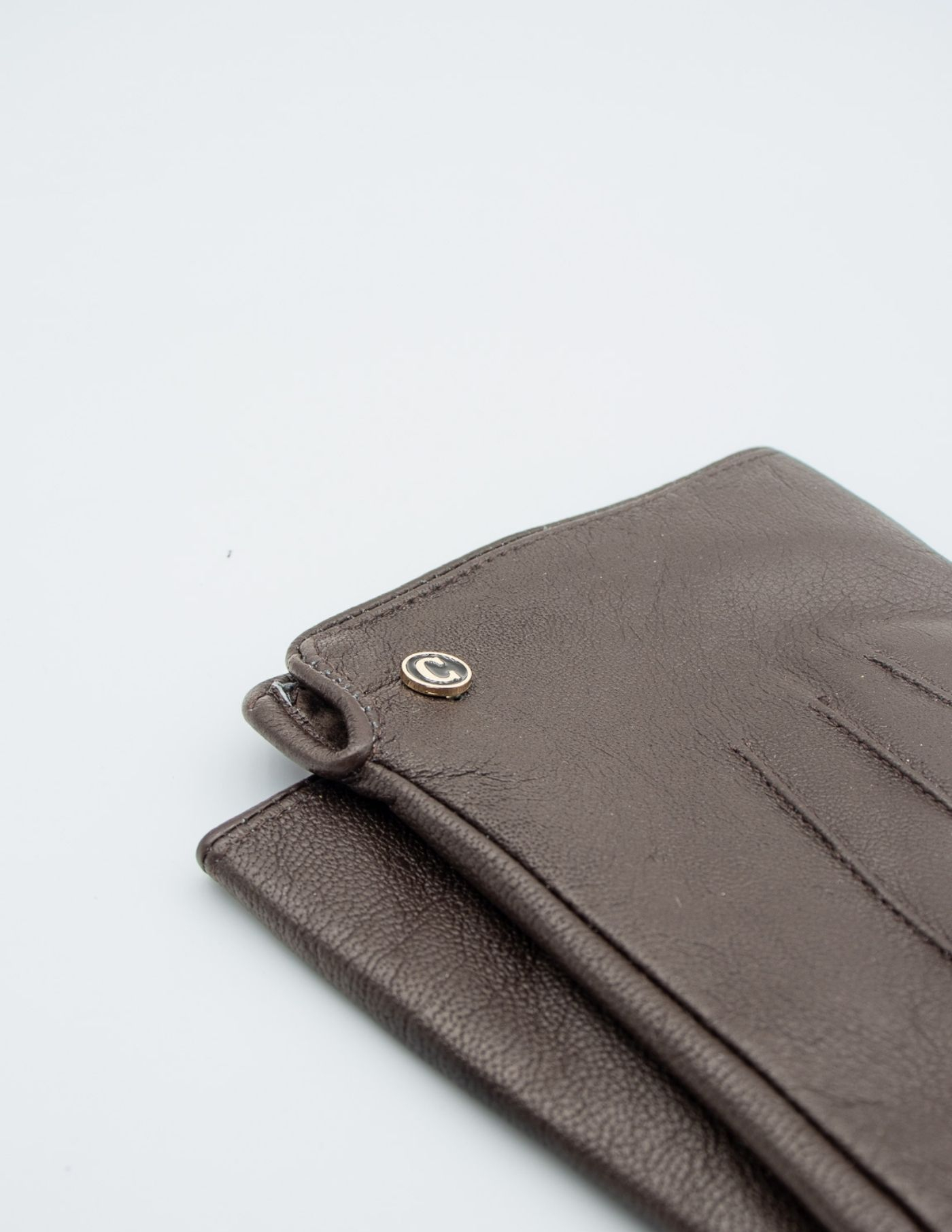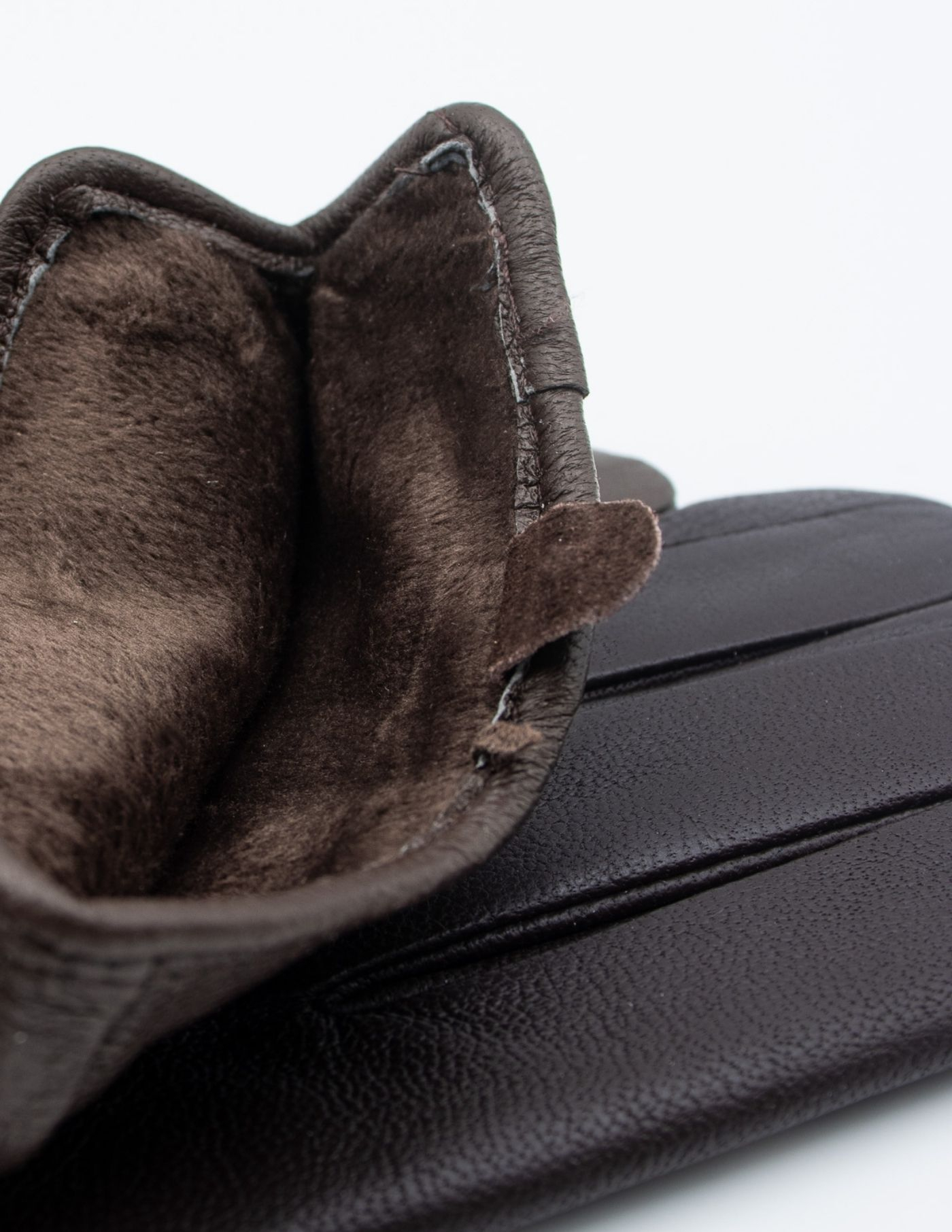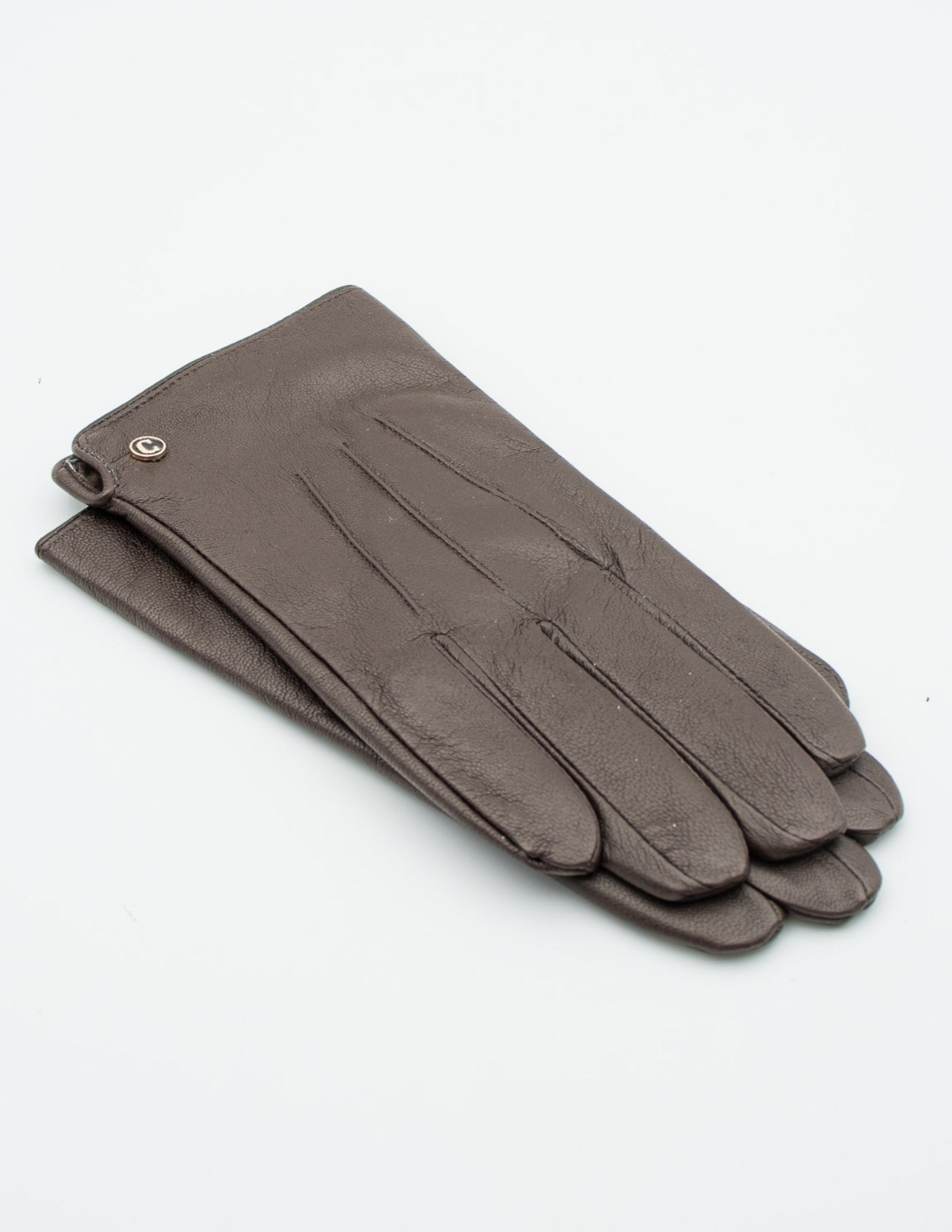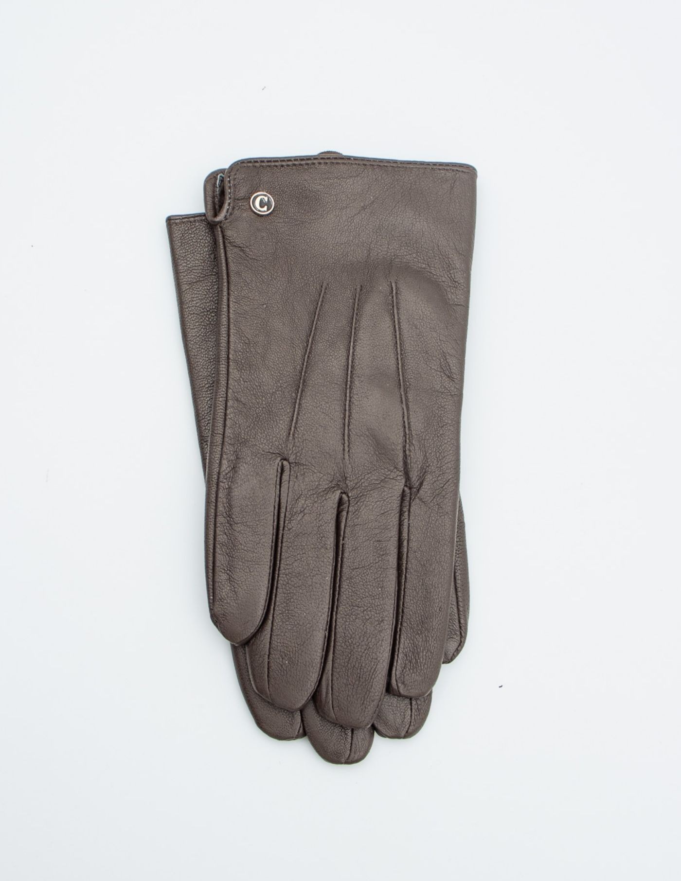 Luvas 100% pele, com interior forrado com pelo, de cor castanha.
