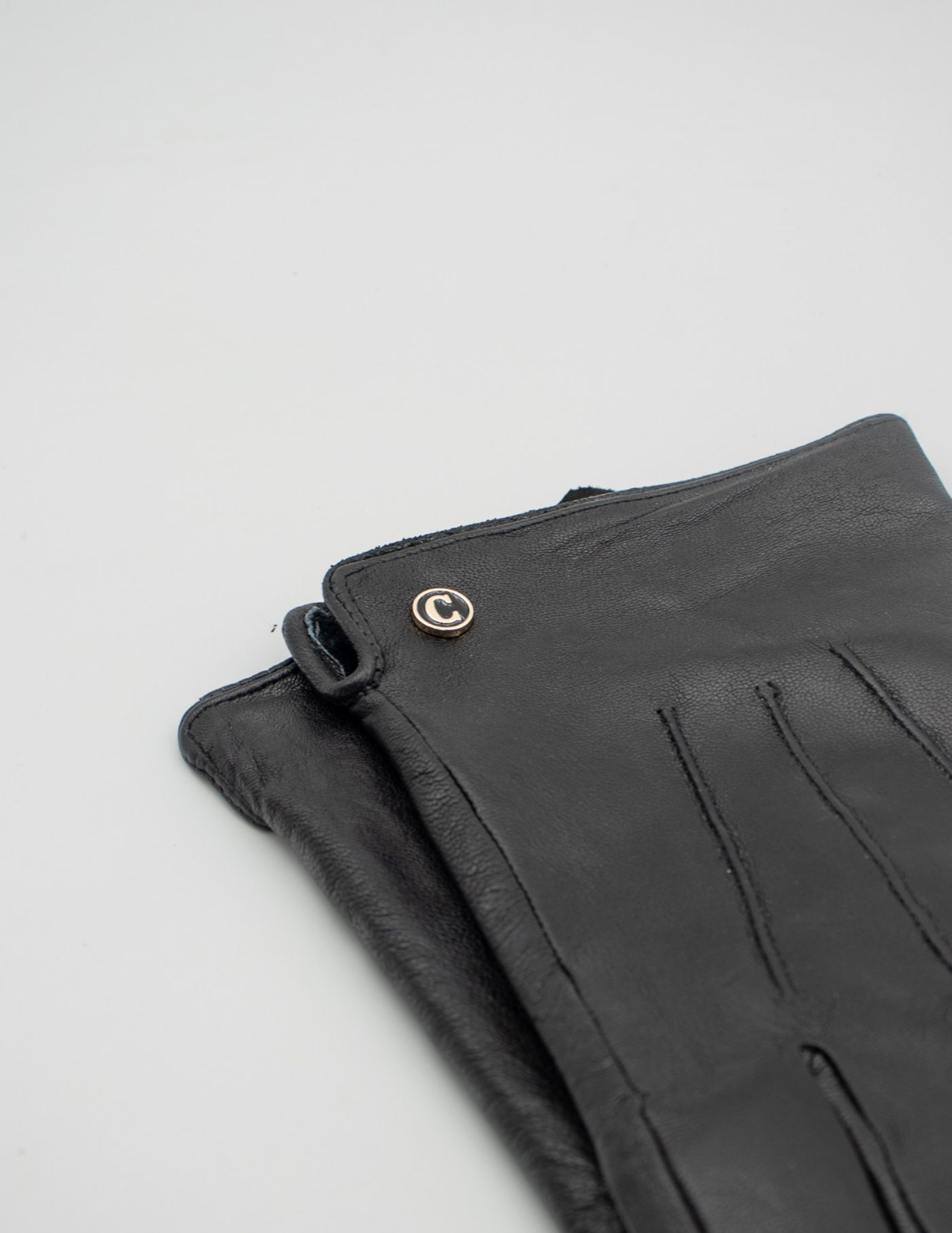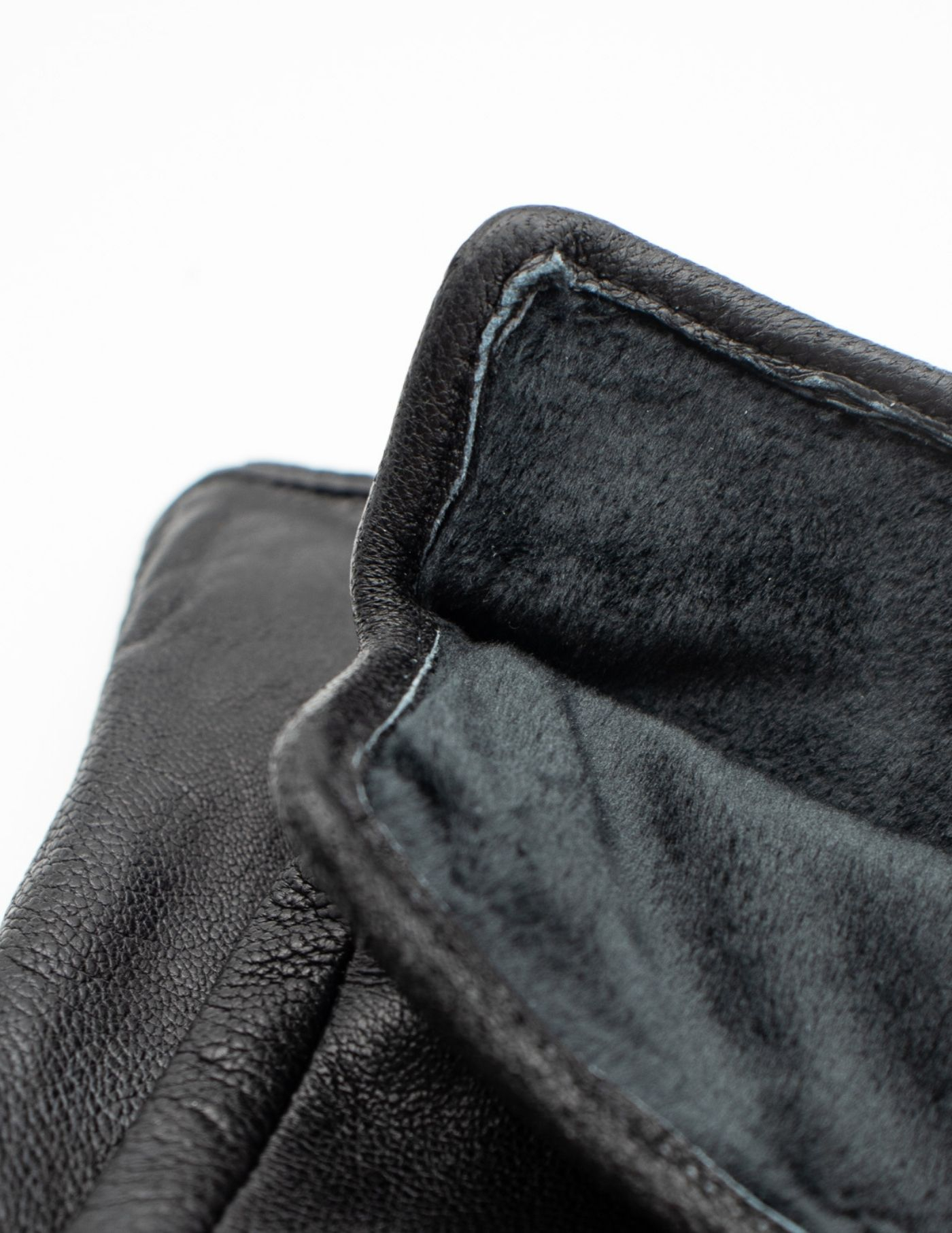 Luvas 100% pele, com interior forrado com pelo, de cor preta.