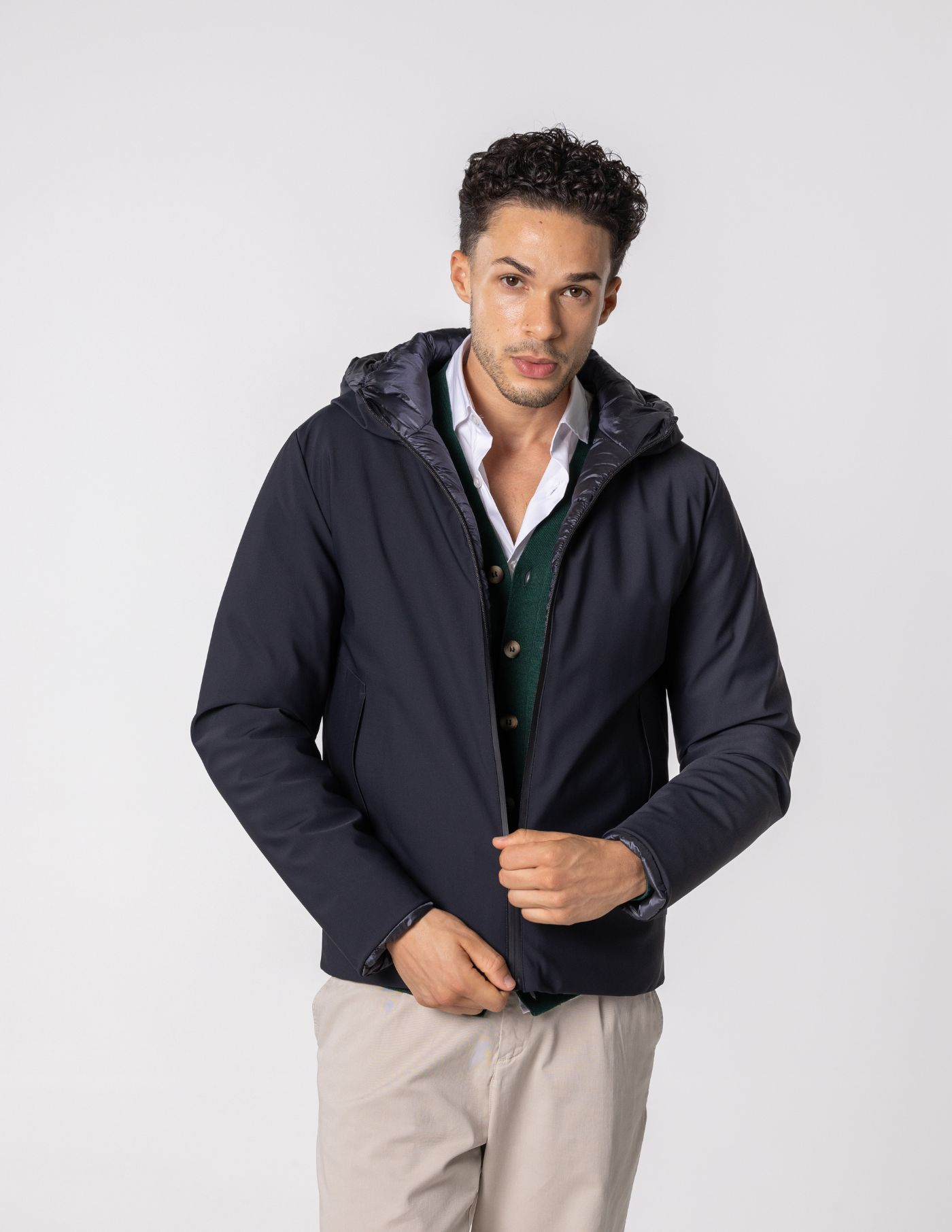 Parka masculina oferece o equilíbrio ideal entre aquecimento e o conforto. Com forro espesso, proporciona o conforto necessário nos dias mais frios. O design moderno e reversível, aliado aos detalhes funcionais como os bolsos frontais, fecho com zíper, torna-a uma escolha prática e elegante para o inverno.