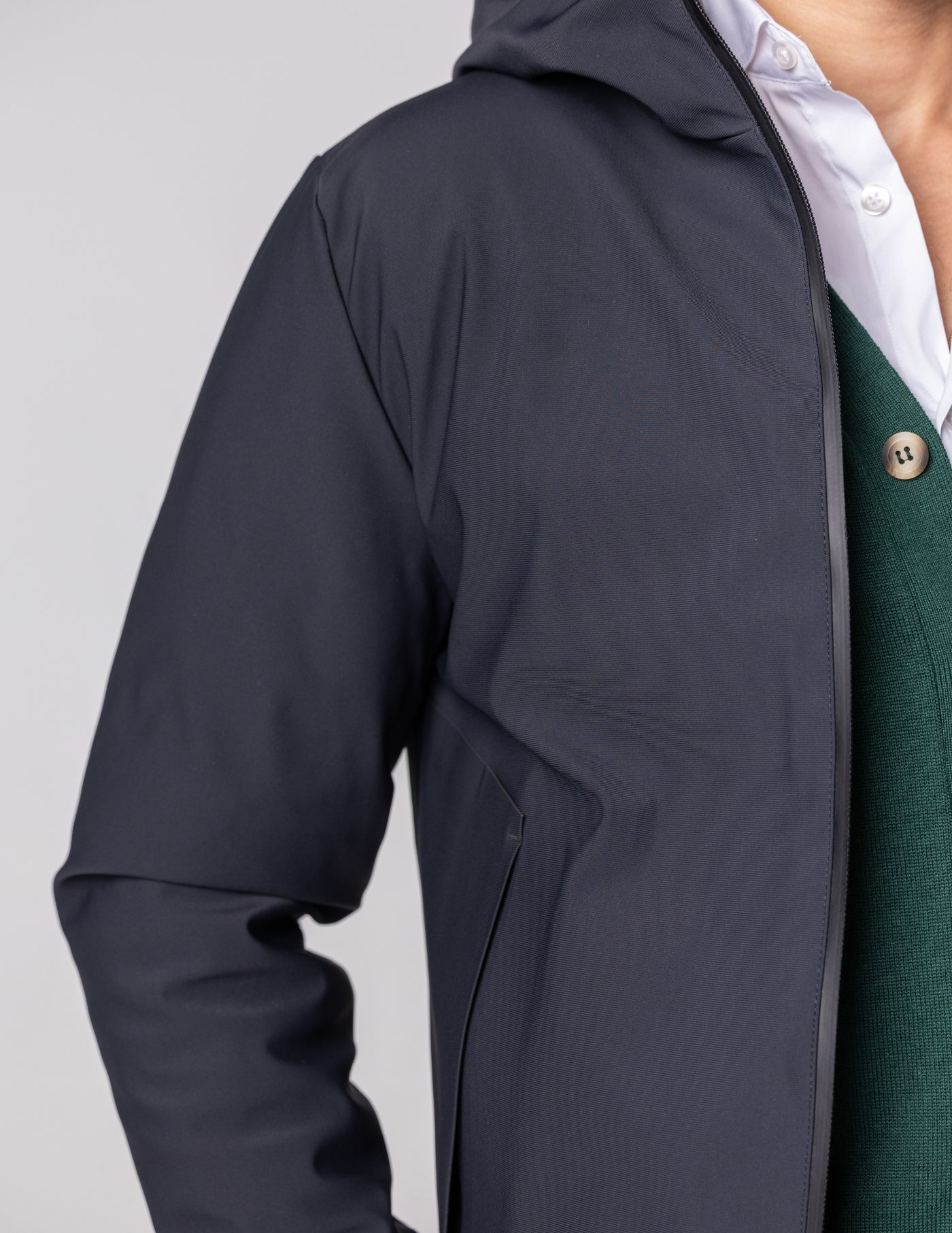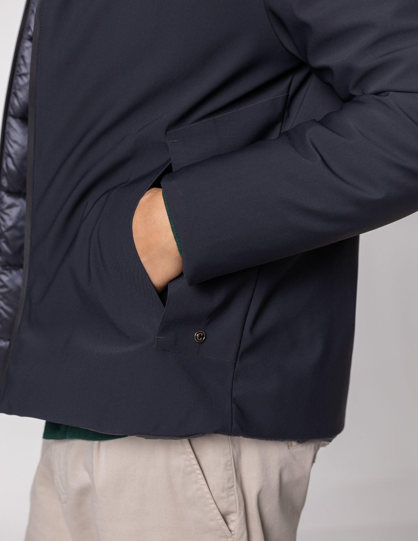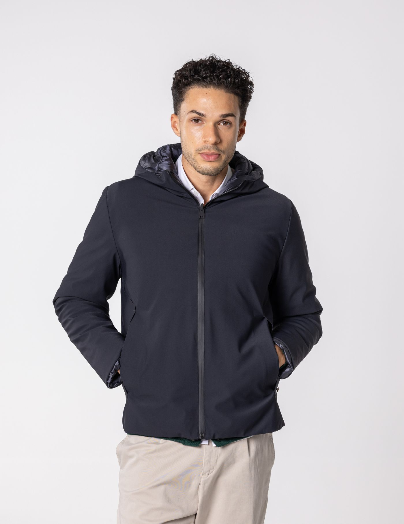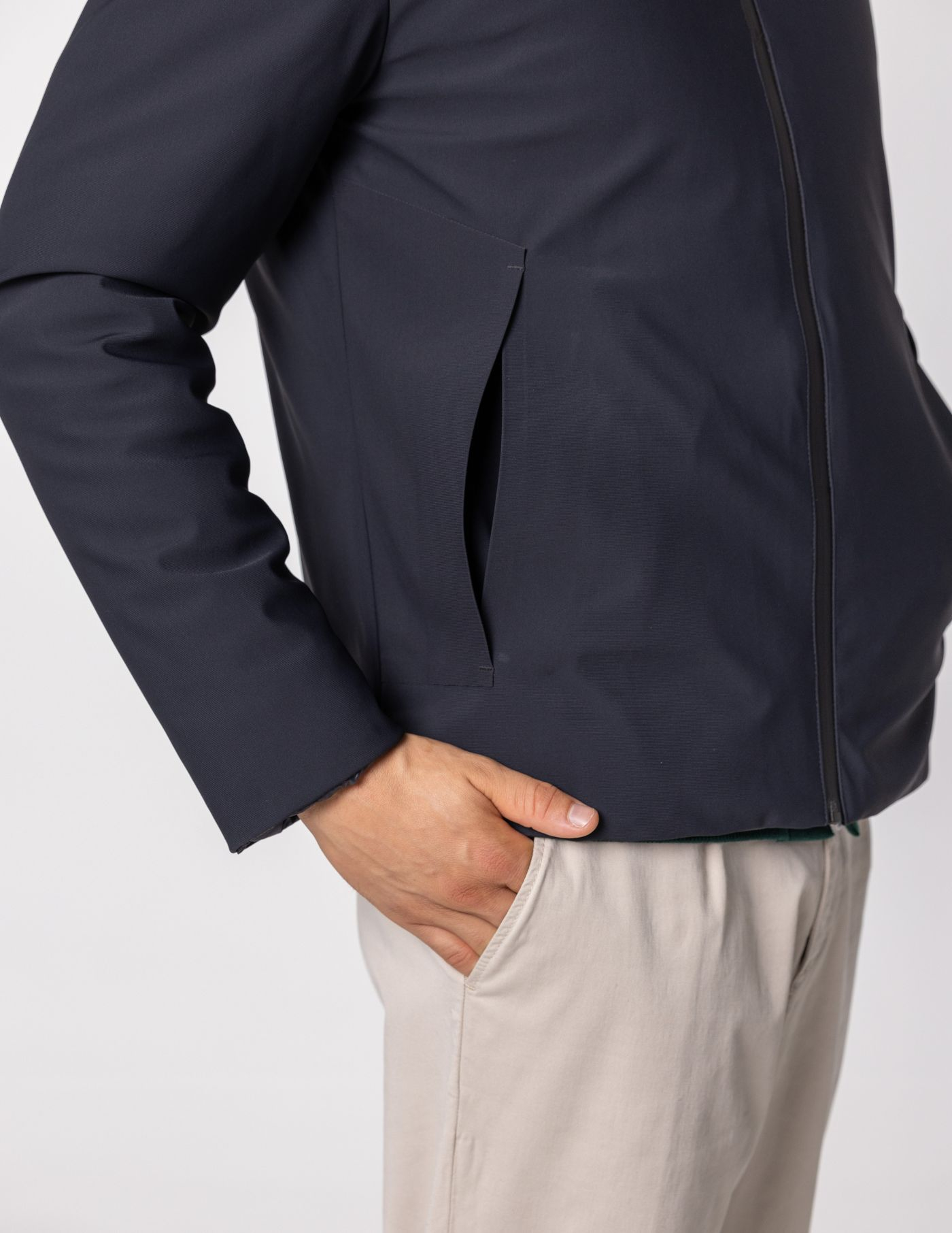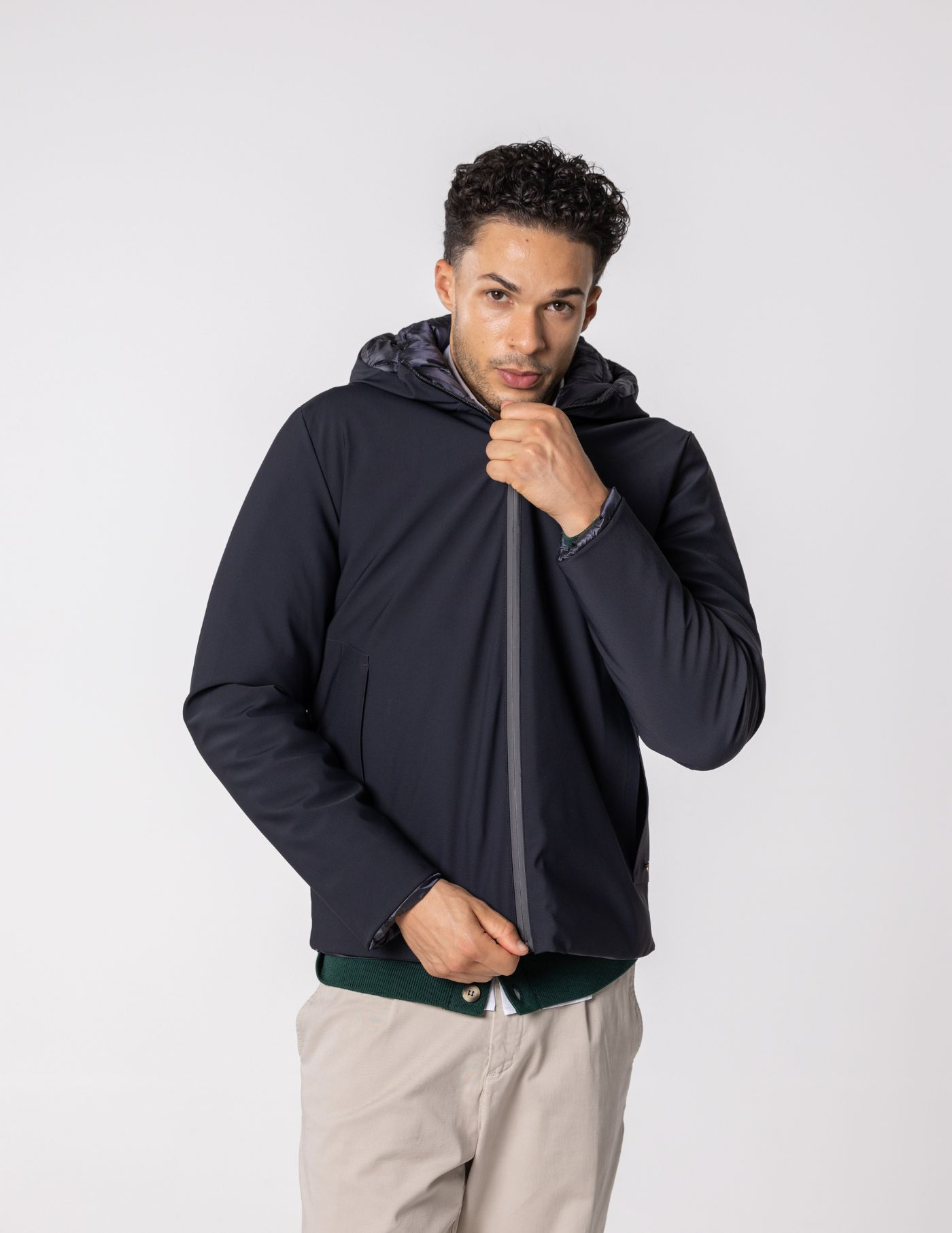 Detalhes: 2 bolsos / Reversível / Fecho de correr / Capuz