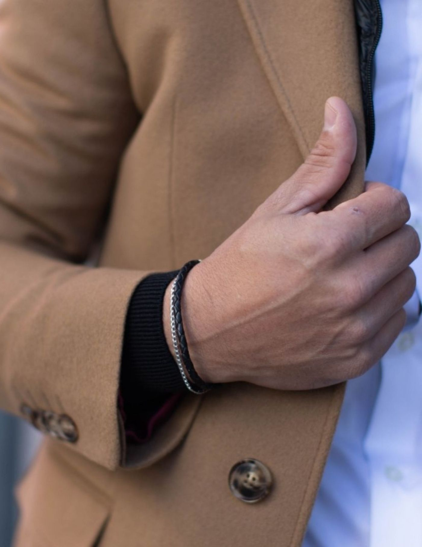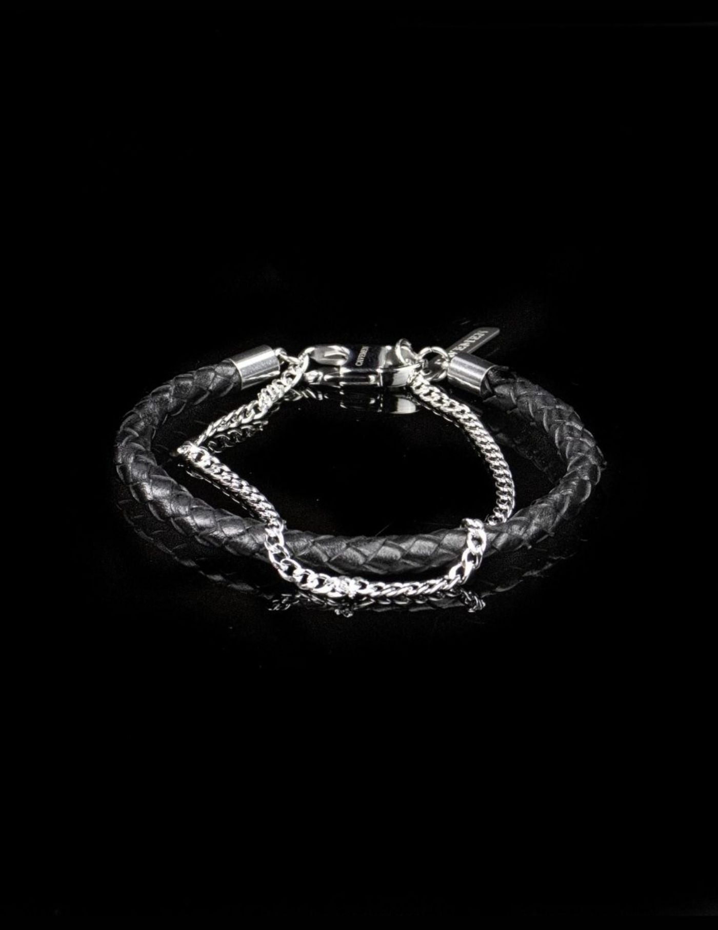 Cor: PretoModelo: Pulseira duplaComprimento: 20 cmLargura: 4 mmComposição: Pele / Aço inoxidável