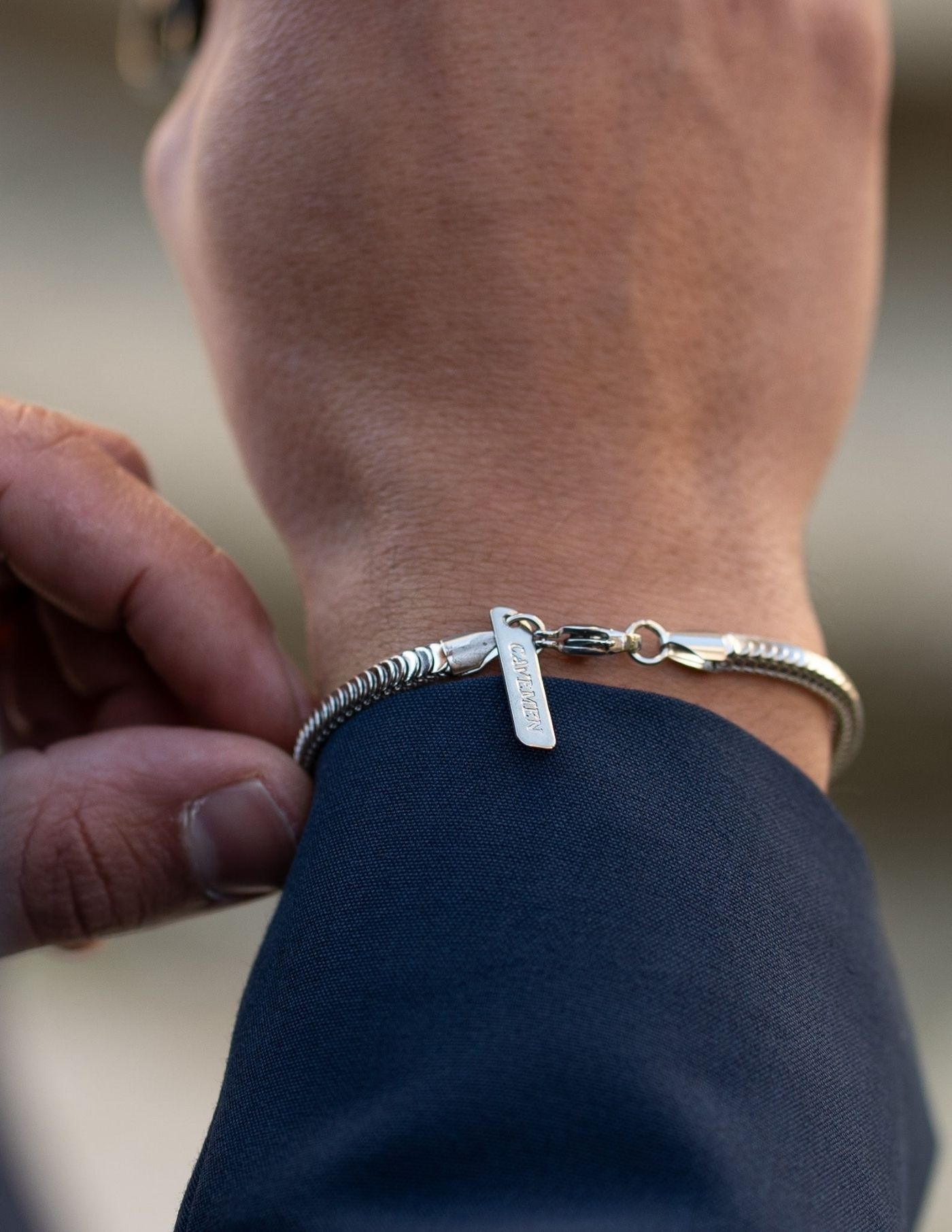 Pulseira em aço inoxidável 316L e acabamento polido, que lhe concede uma durabilidade eterna a título de cor, feita para transmitir toda a essência do universo masculino.