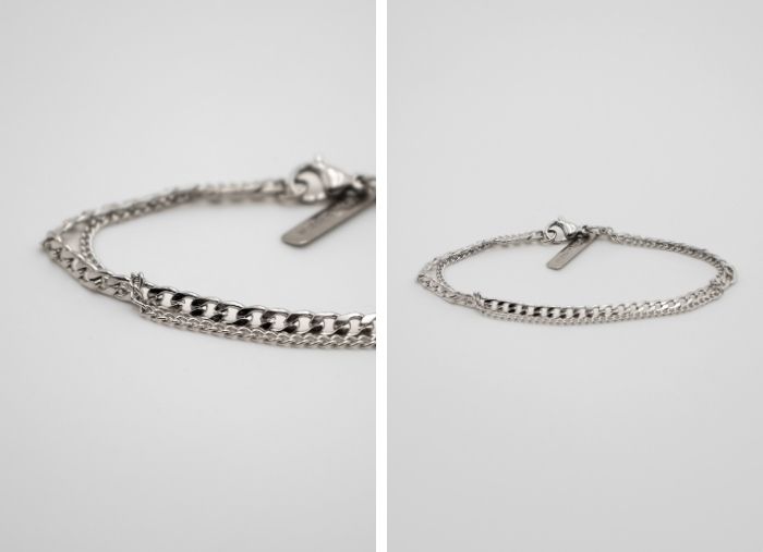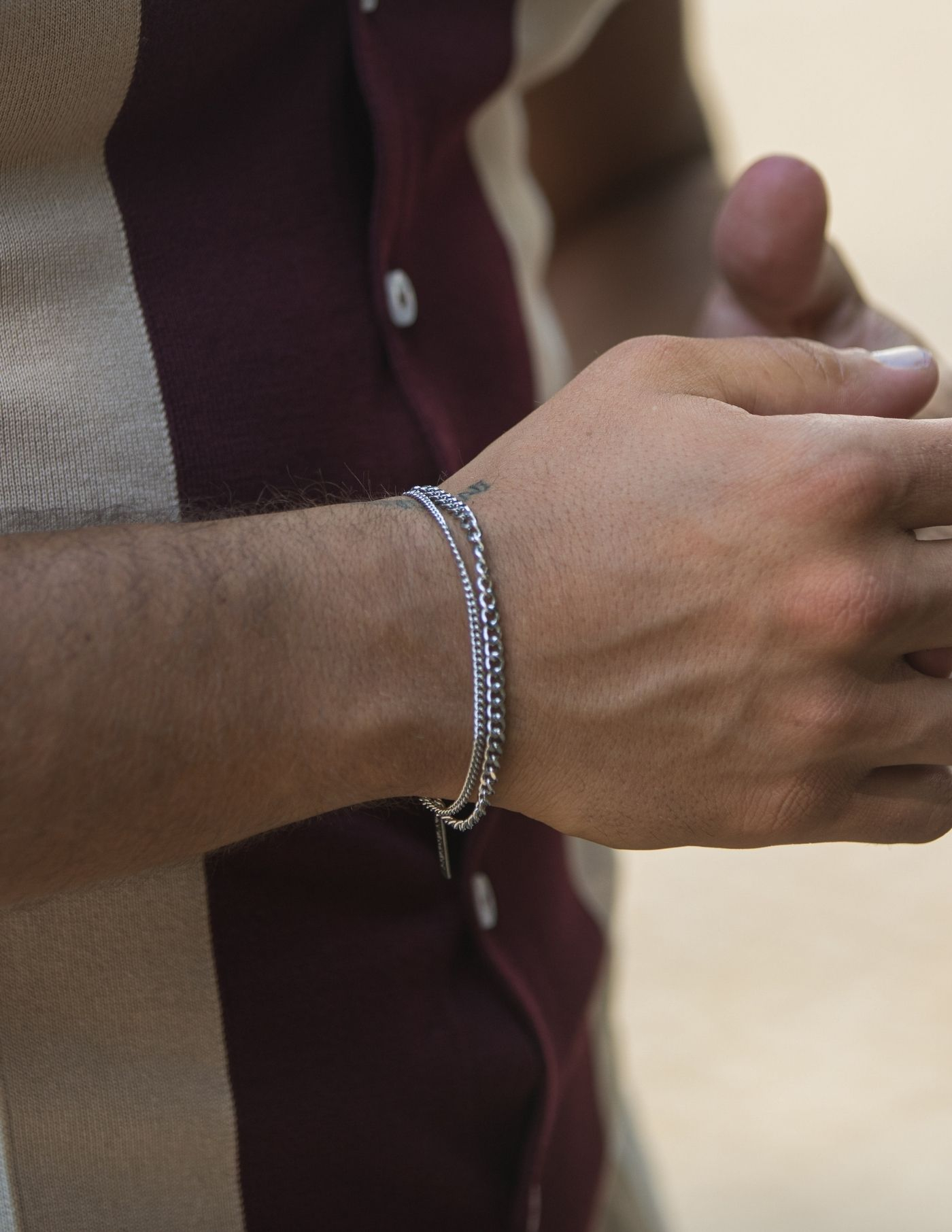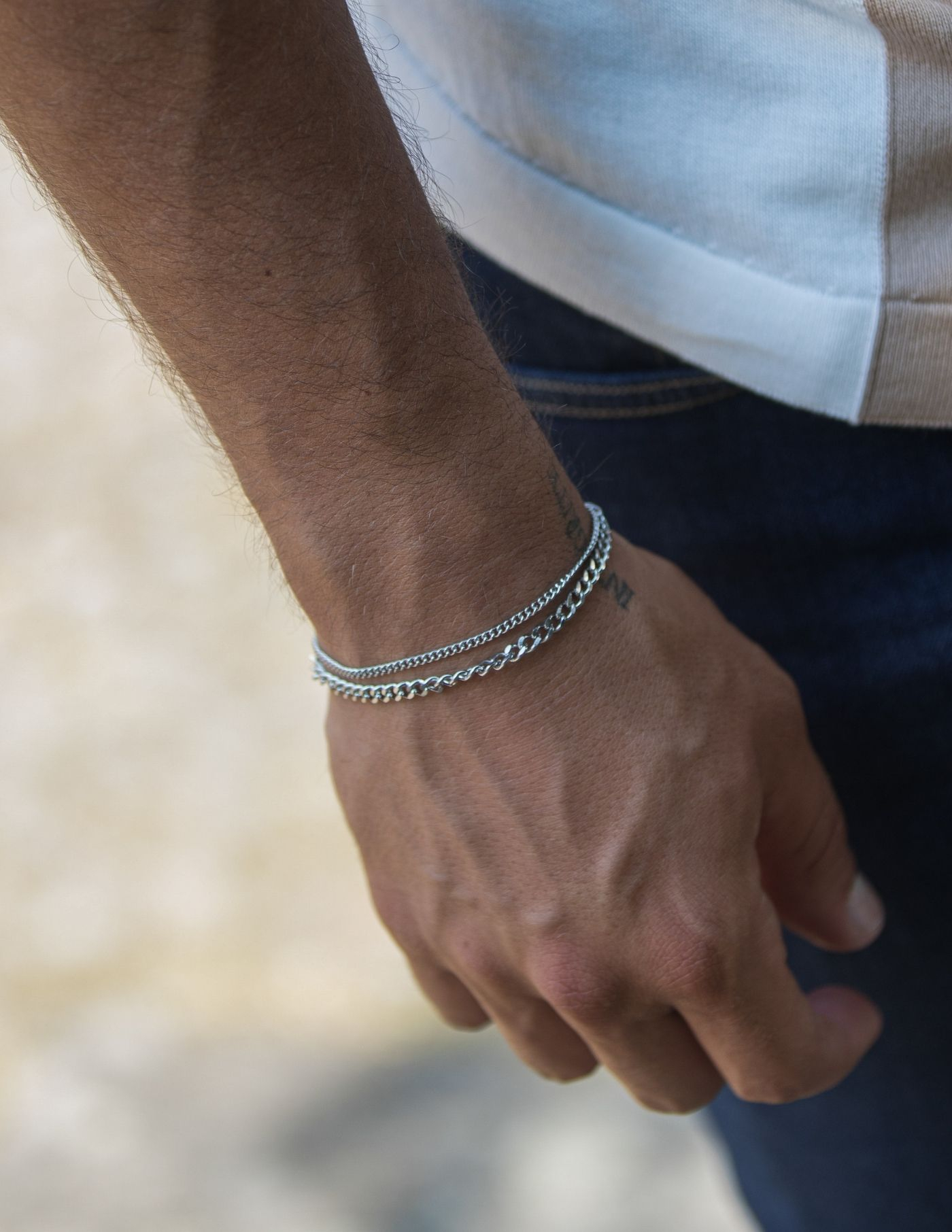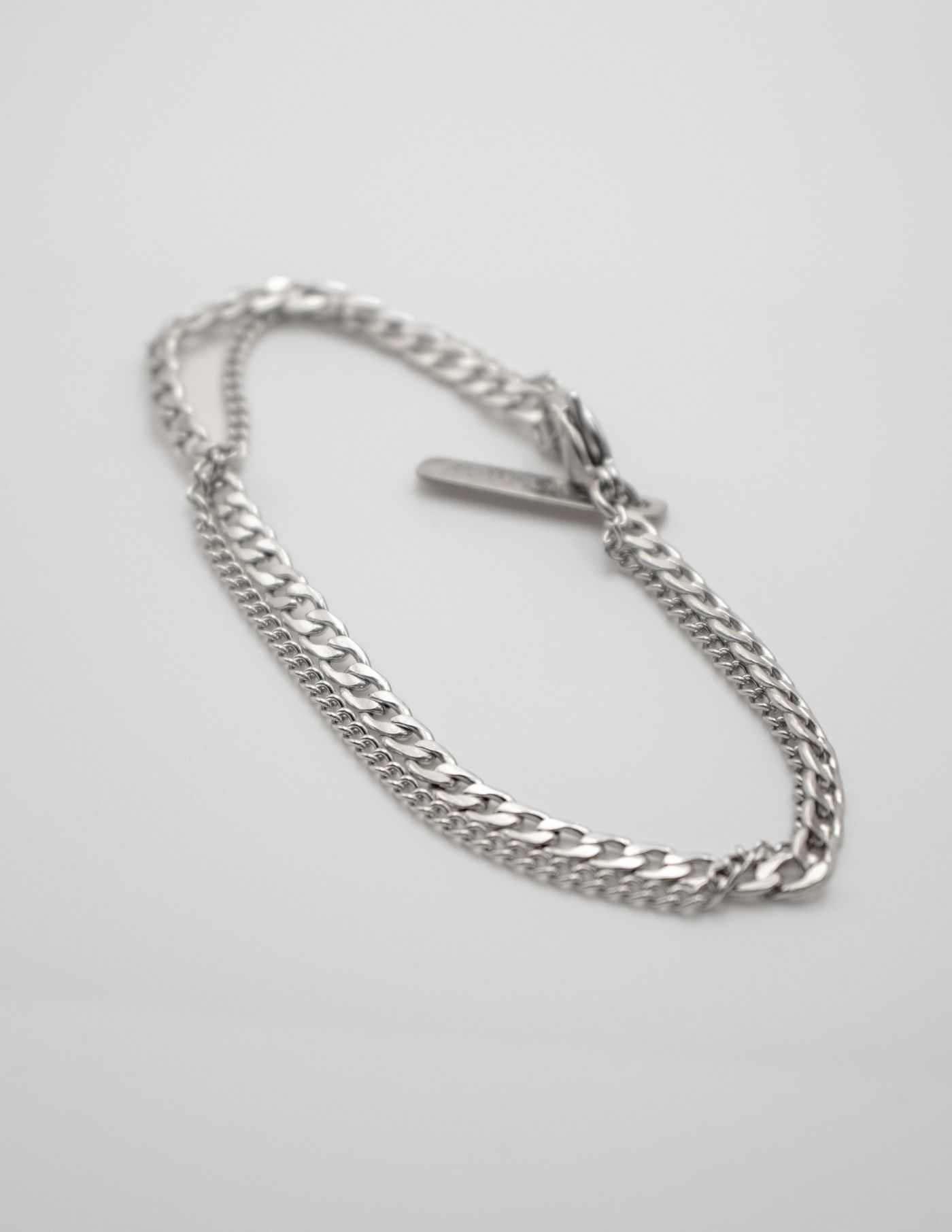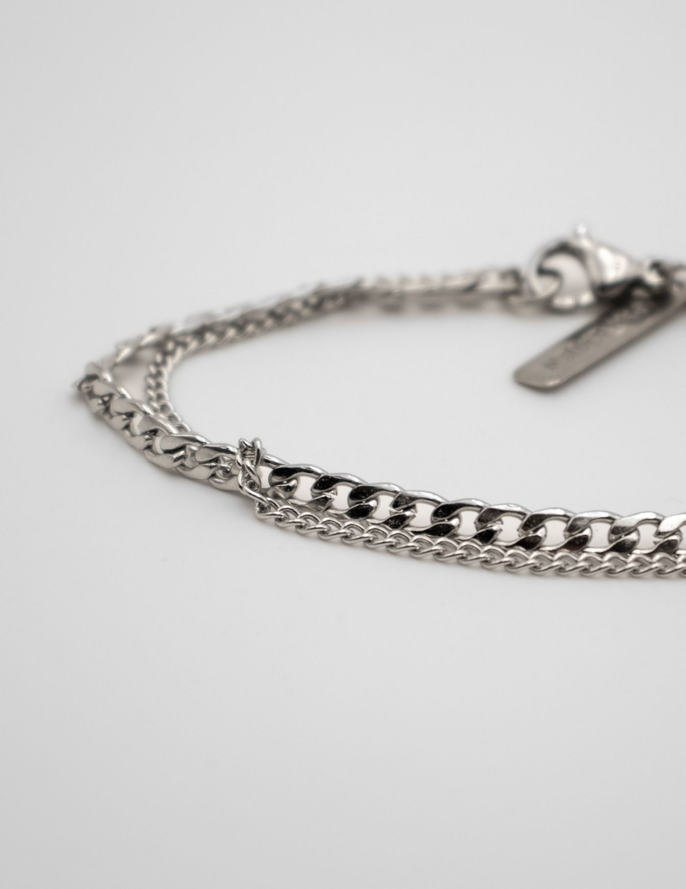 Constituida por duas correntes de espessuras distinta, é a junção de duas pulseiras num só modelo, com a malha mais grossa fixa na zona do pulso, e a mais fina a descair ligeiramente em direção a mão.