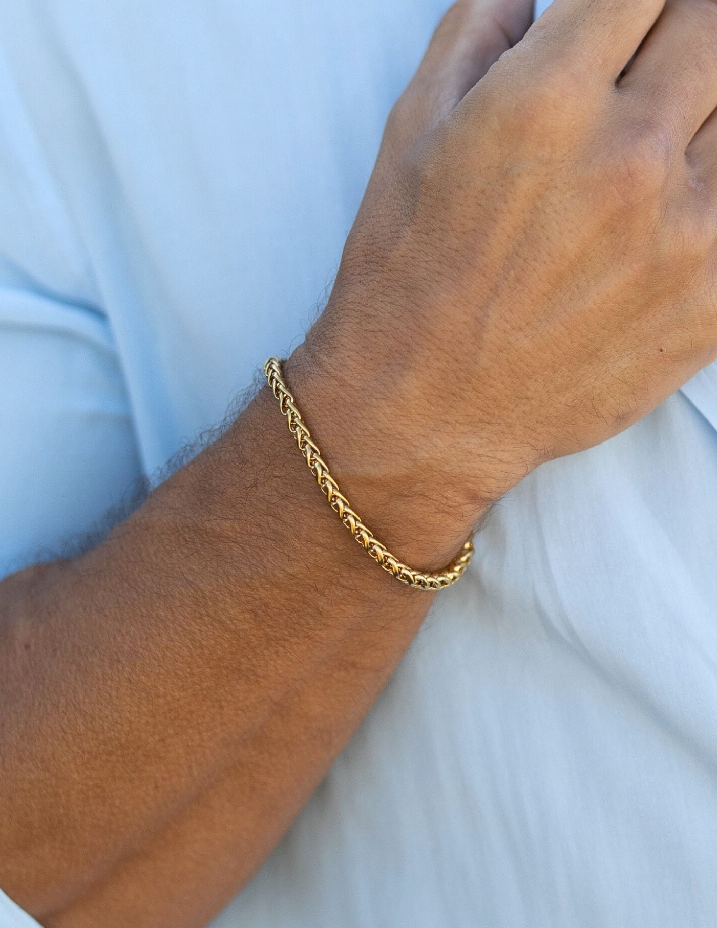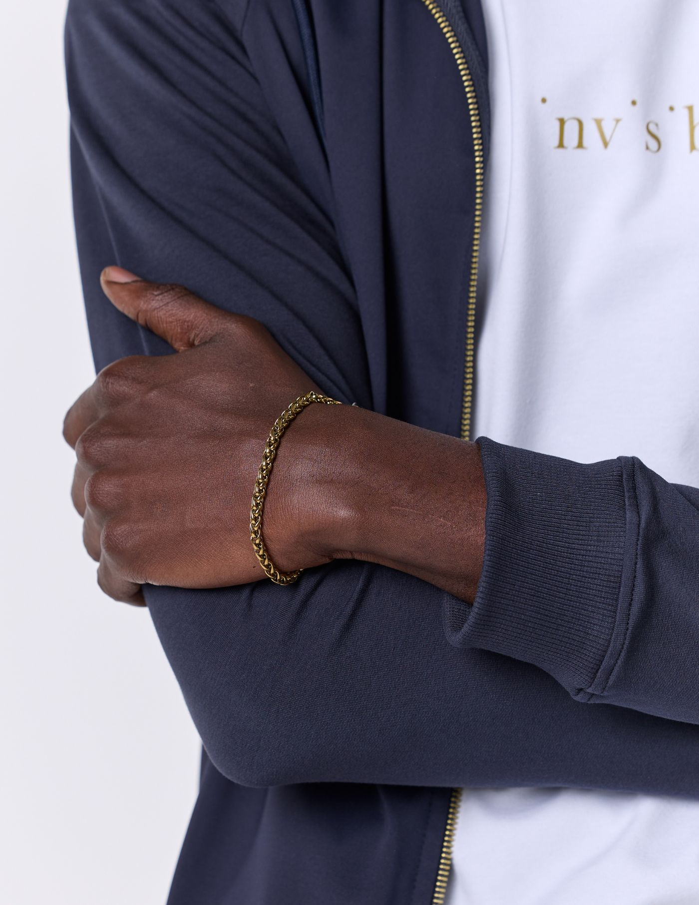 Resistente e masculina, facilmente conjuga-se com outras pulseiras, até de outros materiais, dada a sua versatilidade.