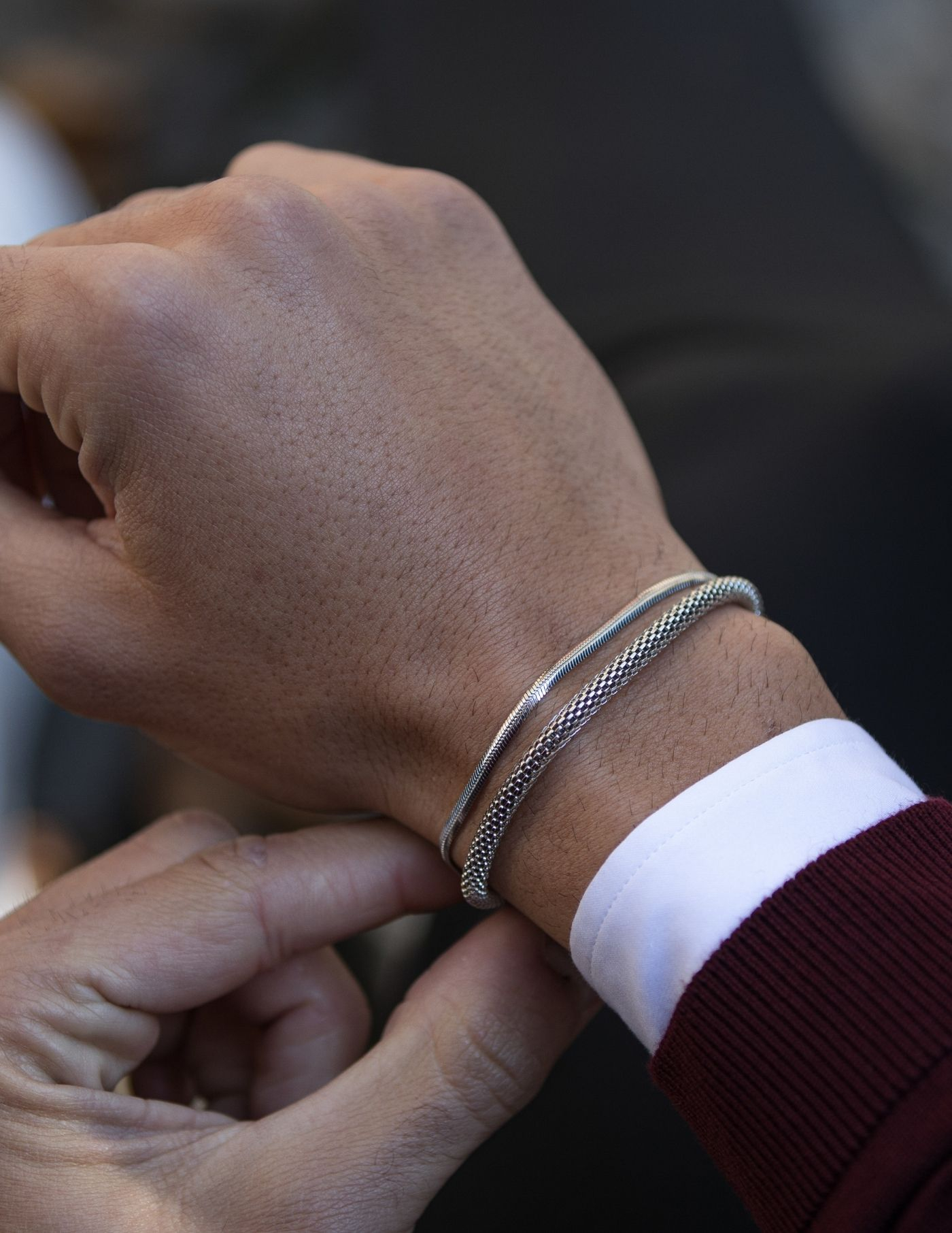 Com um estilo próprio, textura e acabamento refinado, este modelo de pulseira com 20 cm de comprimento e 4 mm de espessura serve de conjugação harmoniosa com outros modelos ou então, se usada individualmente, para enriquecer um look mais leve e minimalista. O seu design e conceção são inspirados na prata indiana.