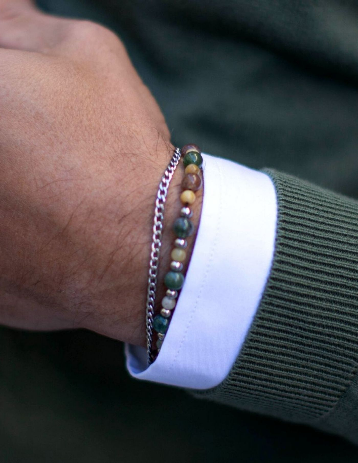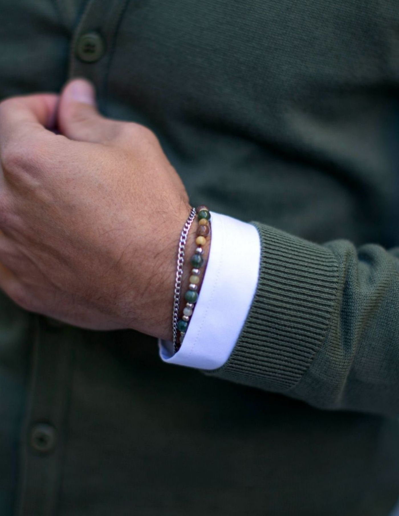 Mantendo o sentido estético das pedras naturais, substituímos o tradicional elástico interno e aplicamos um mosquetão para se tornar mais resistente e segura.