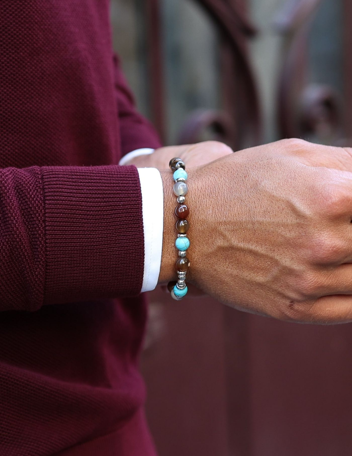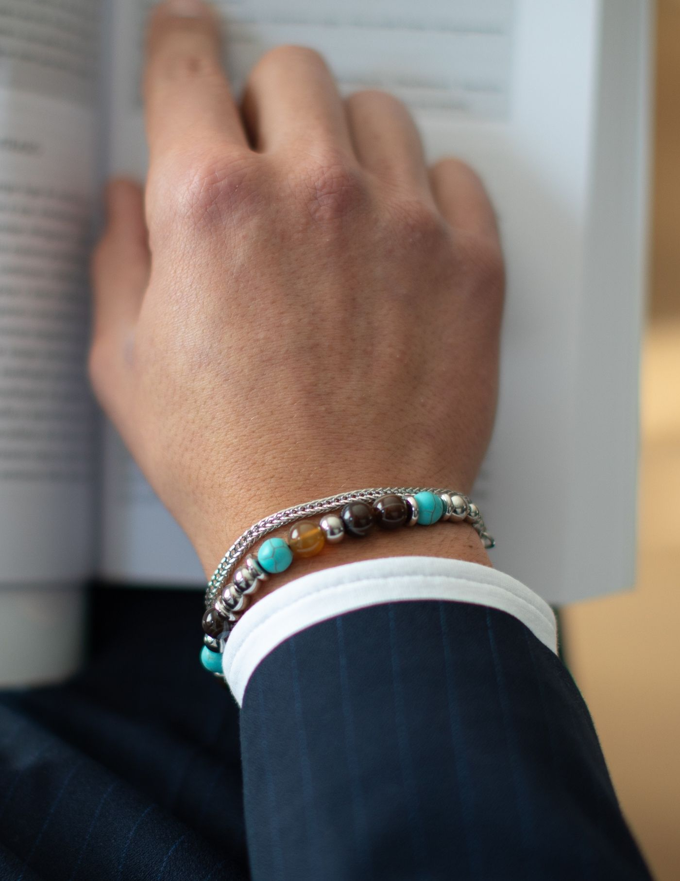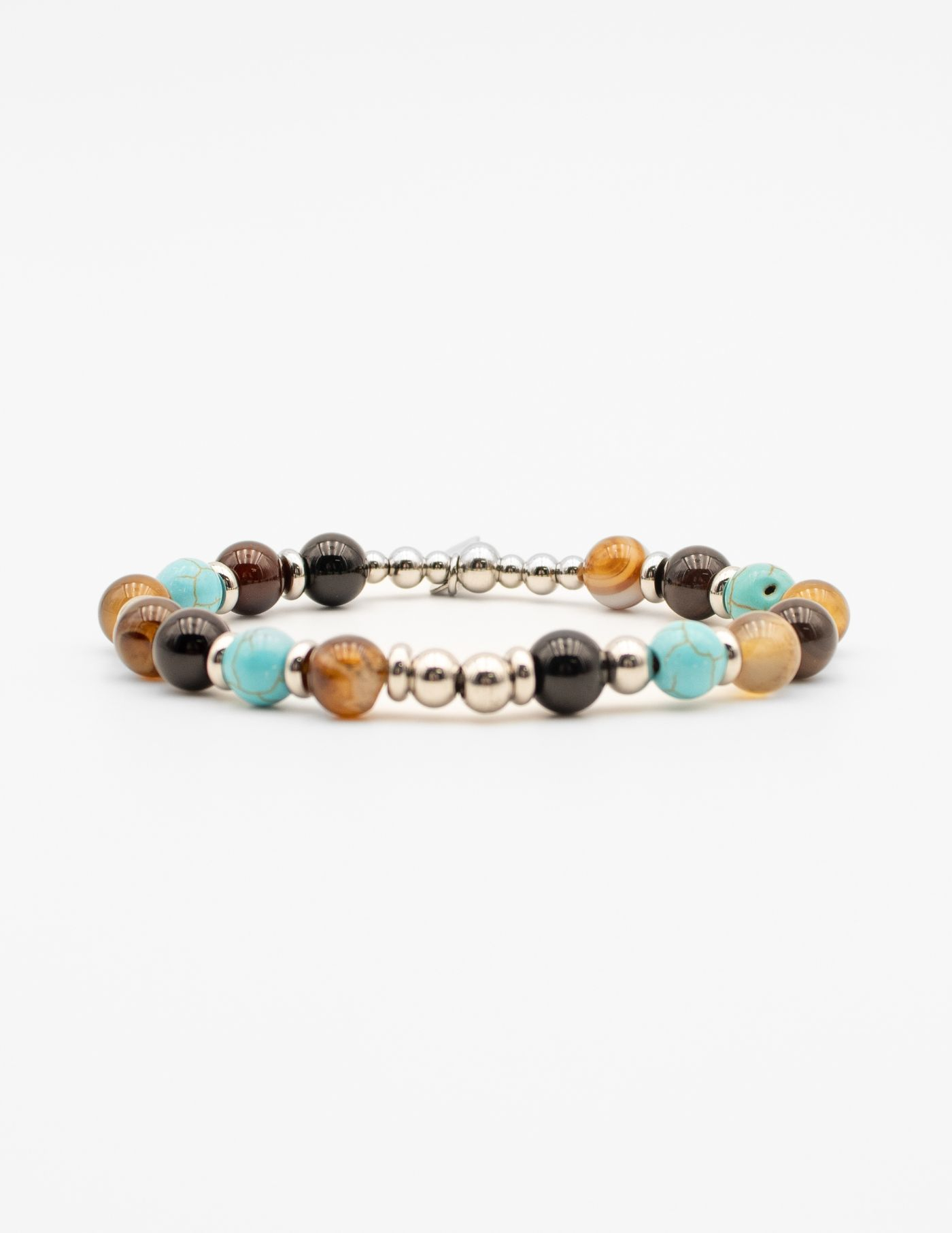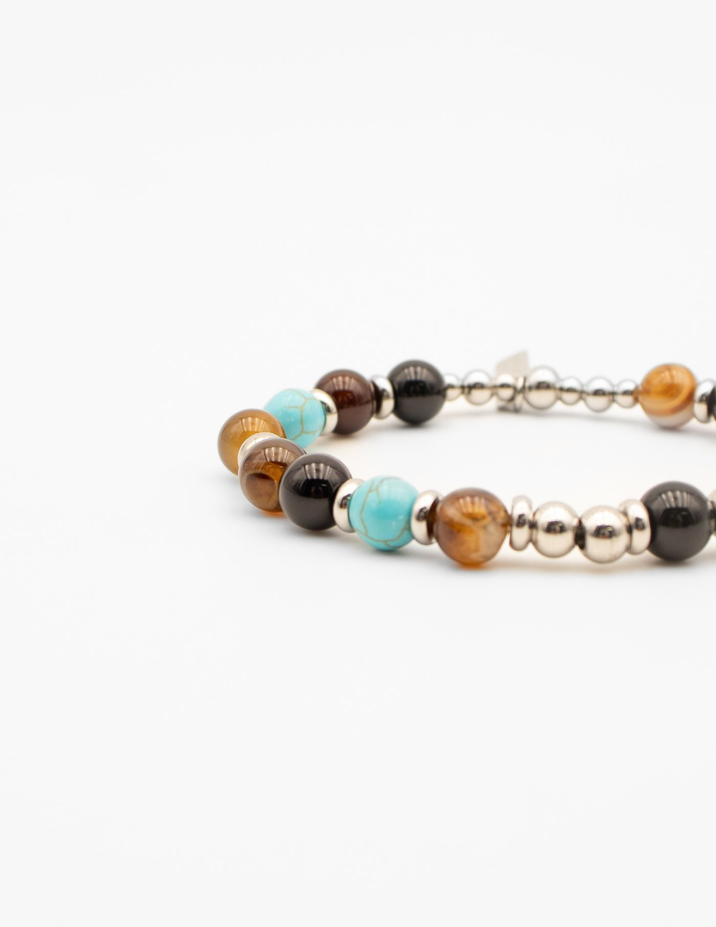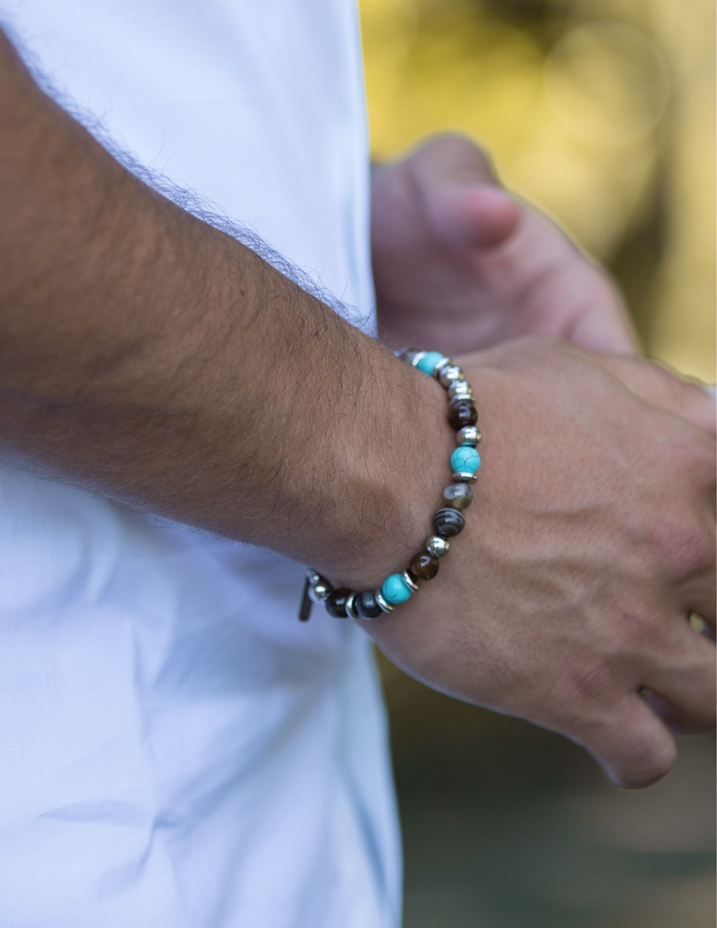 Pode ser aplicada a um momento descontraído com calça de ganga, mas também perfeita para um blazer ou look mais formal. Mantendo o sentido estético das pedras naturais, substituímos o tradicional elástico interno e aplicamos um mosquetão para se tornar mais resistente.