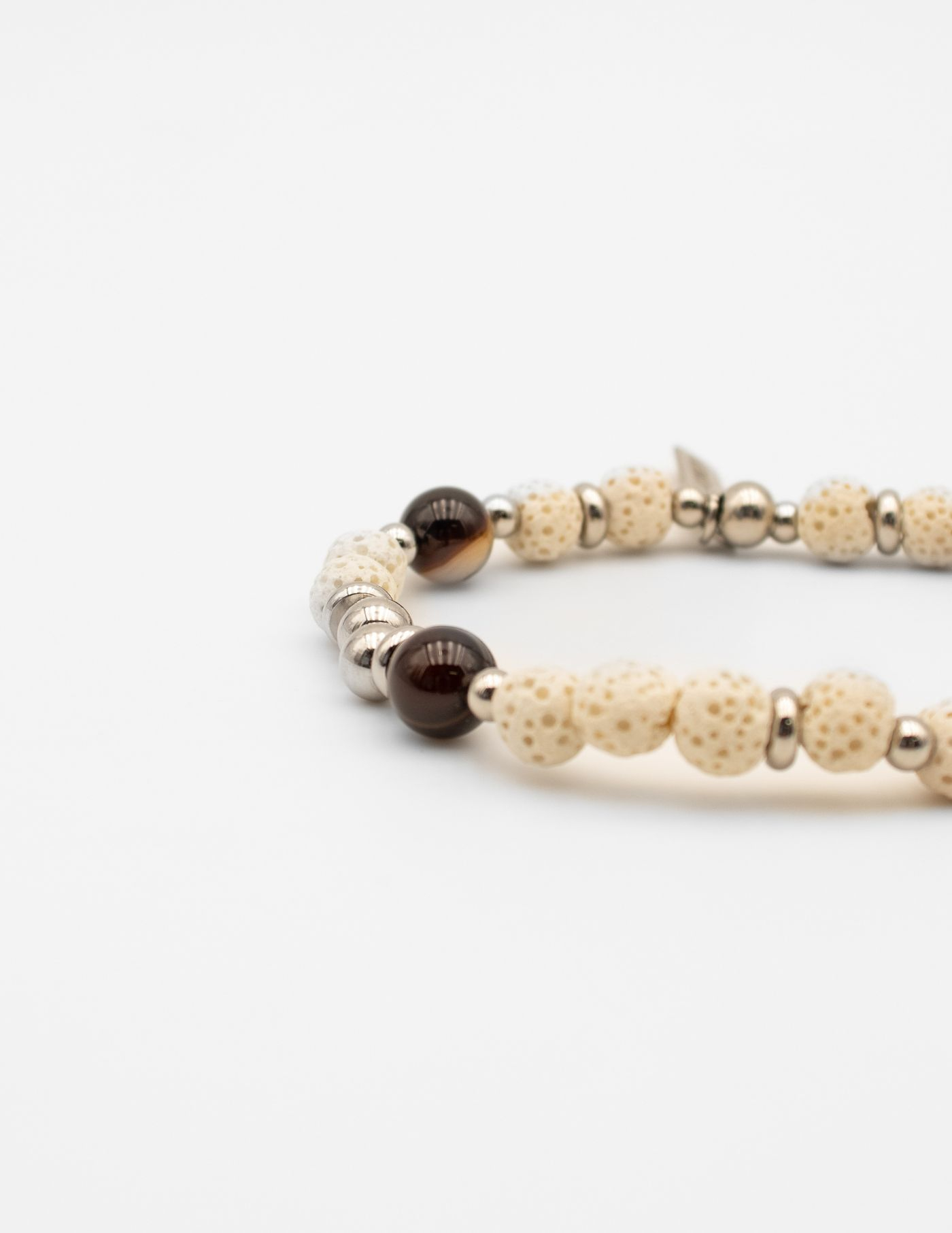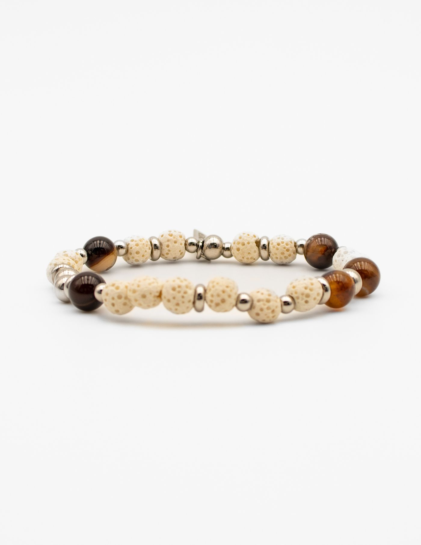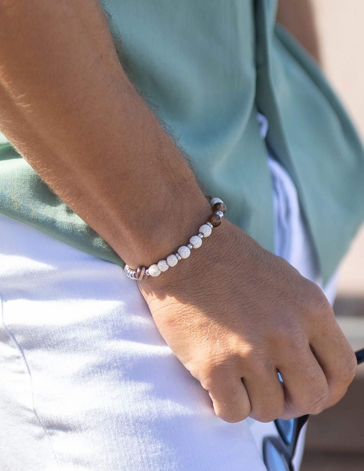 Pode ser aplicada a um momento descontraído com calça de ganga, mas também perfeita para um blazer ou look mais formal. Mantendo o sentido estético das pedras naturais, substituímos o tradicional elástico interno e aplicamos um mosquetão para se tornar mais resistente.