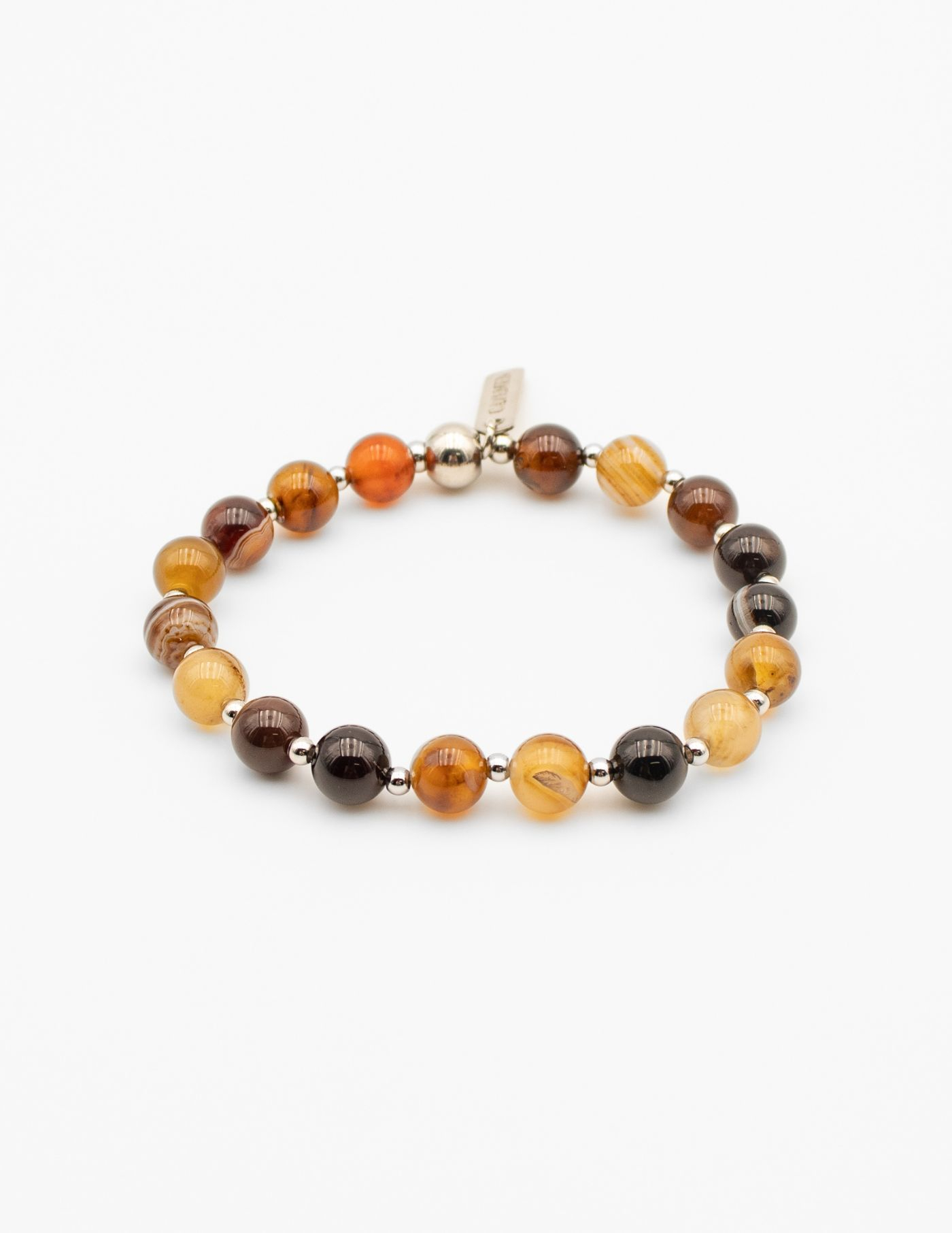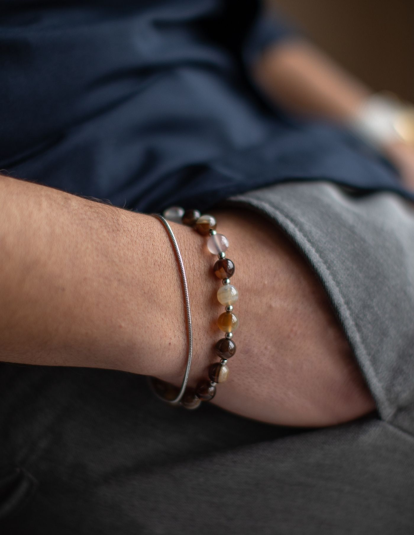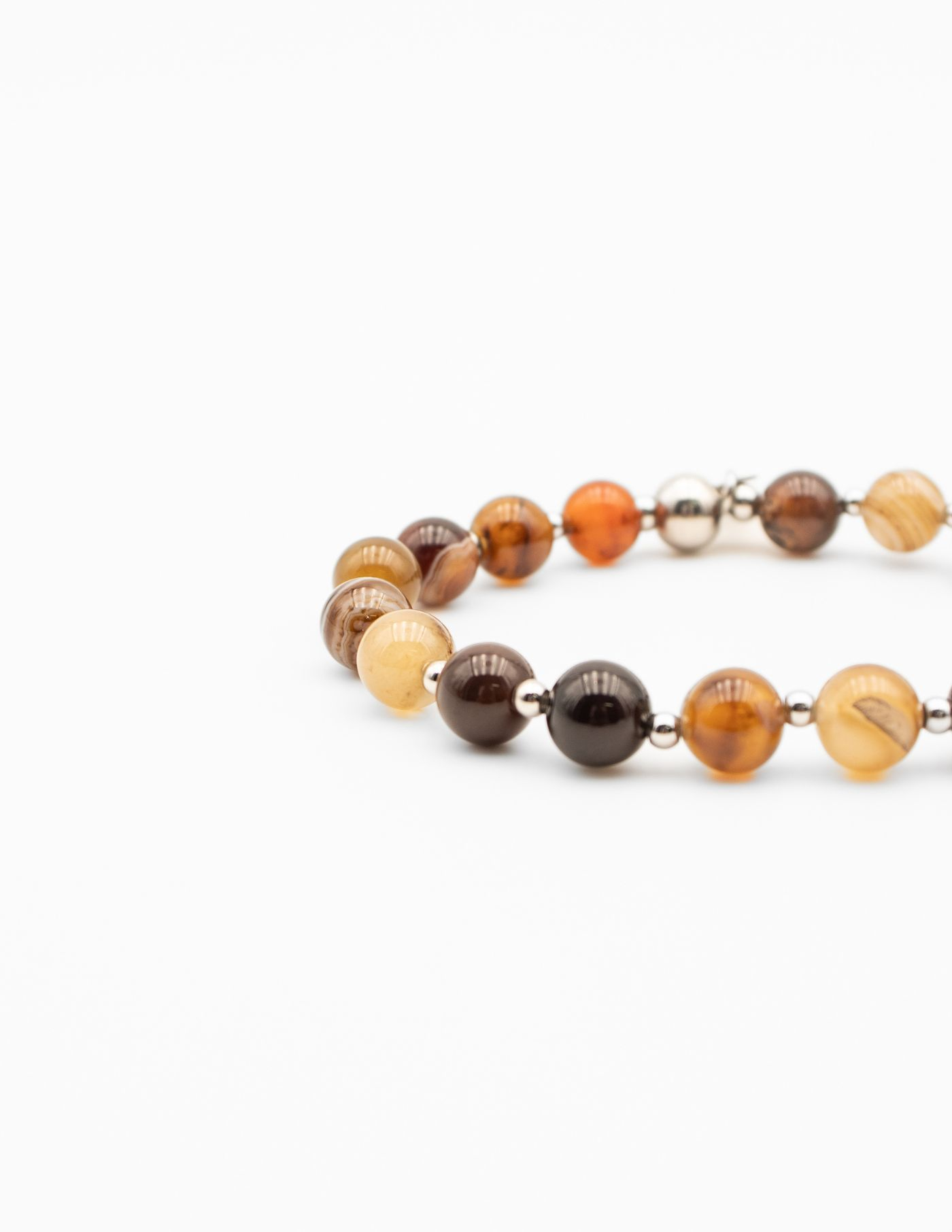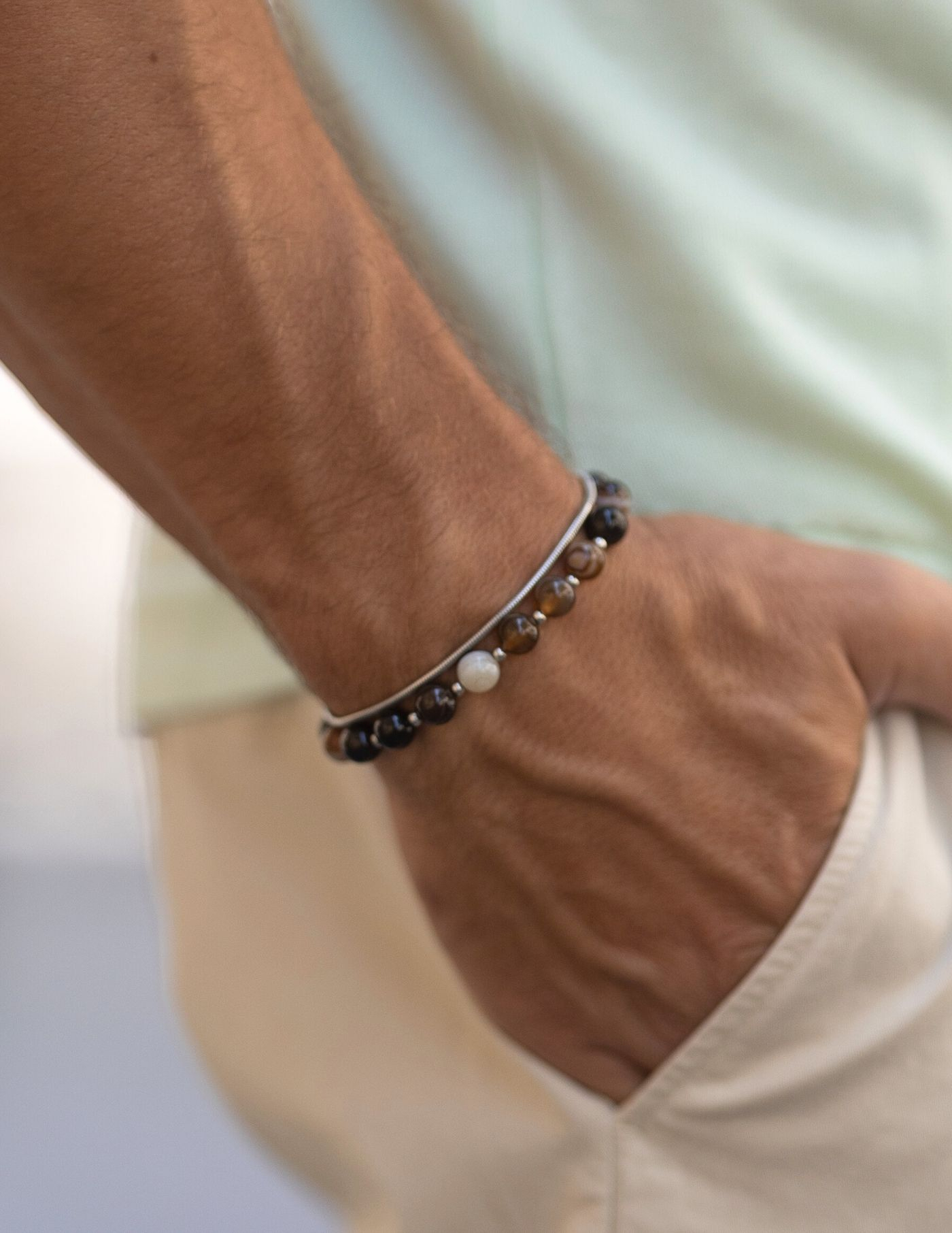 Pode ser aplicada a um momento descontraído com calça de ganga, mas também perfeita para um blazer ou look mais formal. Mantendo o sentido estético das pedras naturais, substituímos o tradicional elástico interno e aplicamos um mosquetão para se tornar mais resistente.