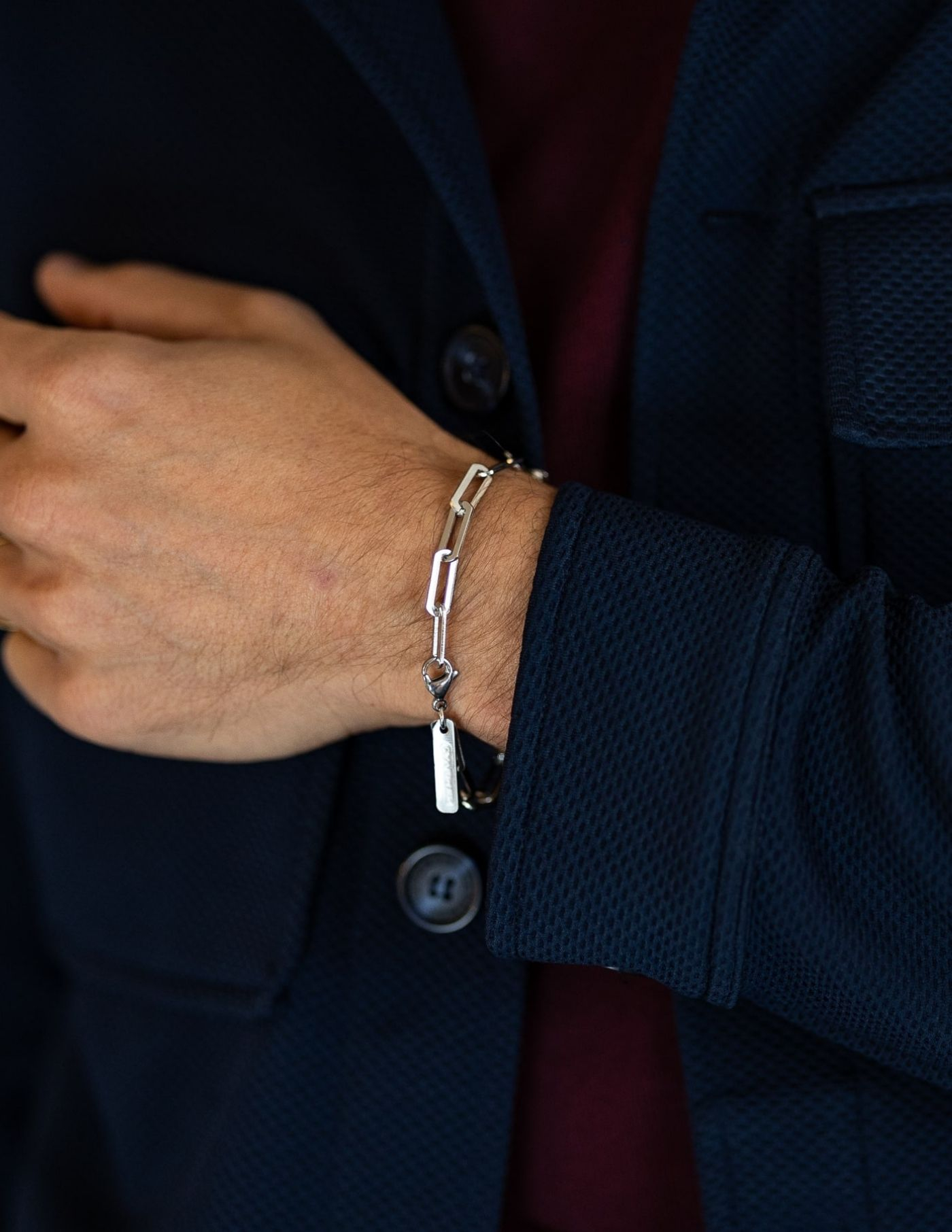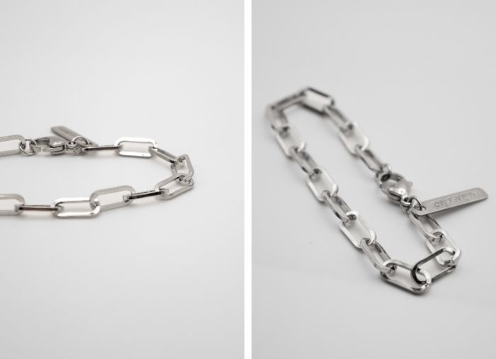 Pulseira de cor prateada, em aço inoxidável 316L de alta qualidade que garante uma durabilidade eterna a título de cor.