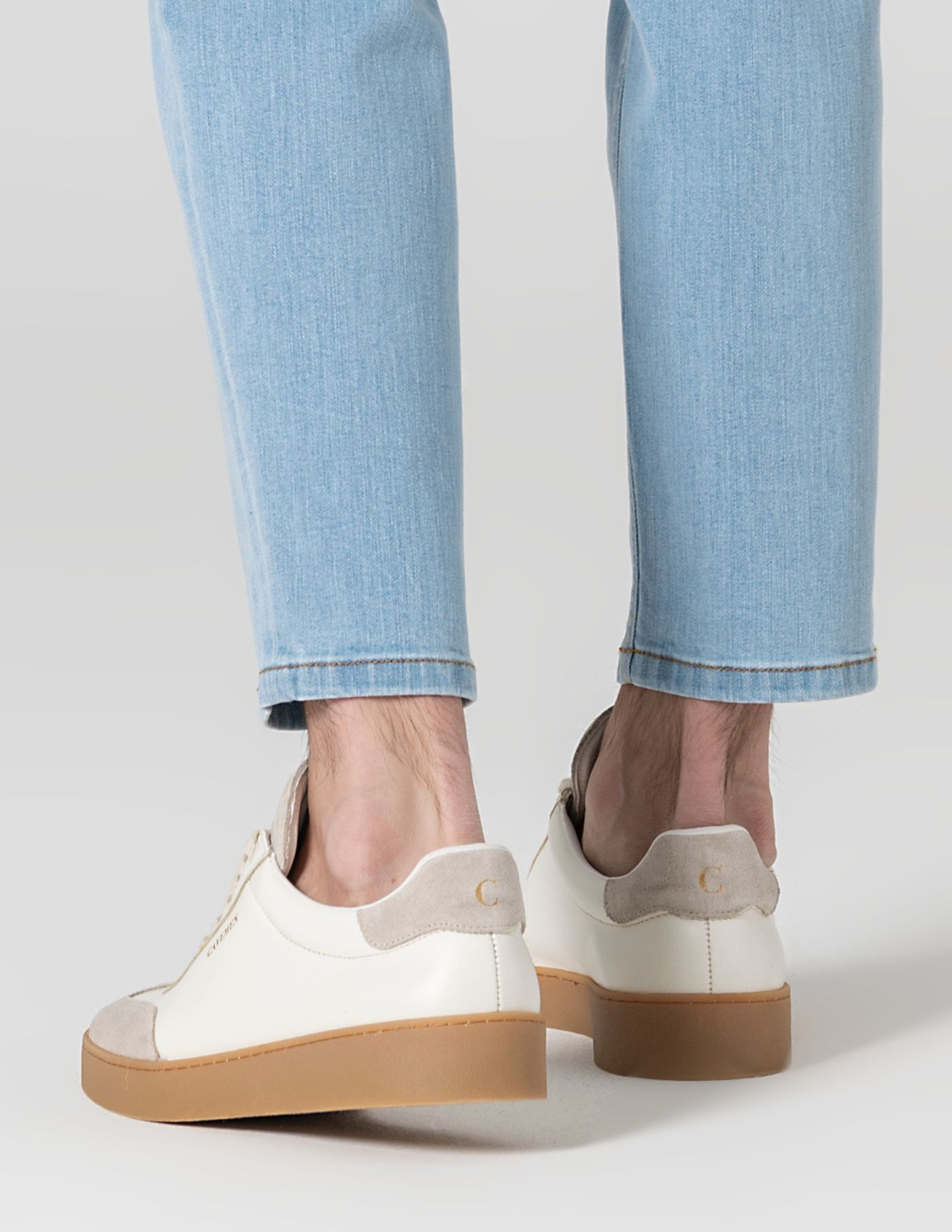 Um desenho minimalista, definido pela qualidade dos materiais e na precisão do corte. O contraste subtil entre texturas revela a atenção ao detalhe, do rebordo limpo à costura firme que acompanha a curva do pé. Uma peça versátil, pensada para quem valoriza conforto e materiais que resistem ao tempo.