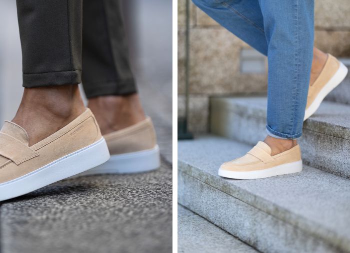 A opção ideal para adicionar um toque leve e moderno, seja num look de dia a dia ou de ocasião especial. Combina pele em camurça na parte superior com uma sola leve e confortável na parte inferior. Forro interior é antialérgico e respirável.