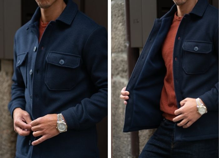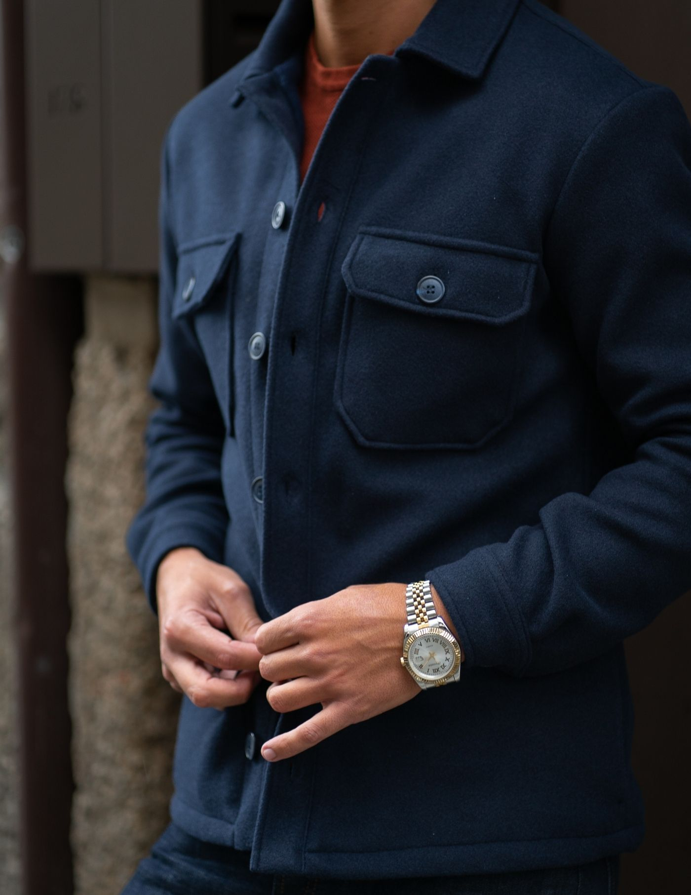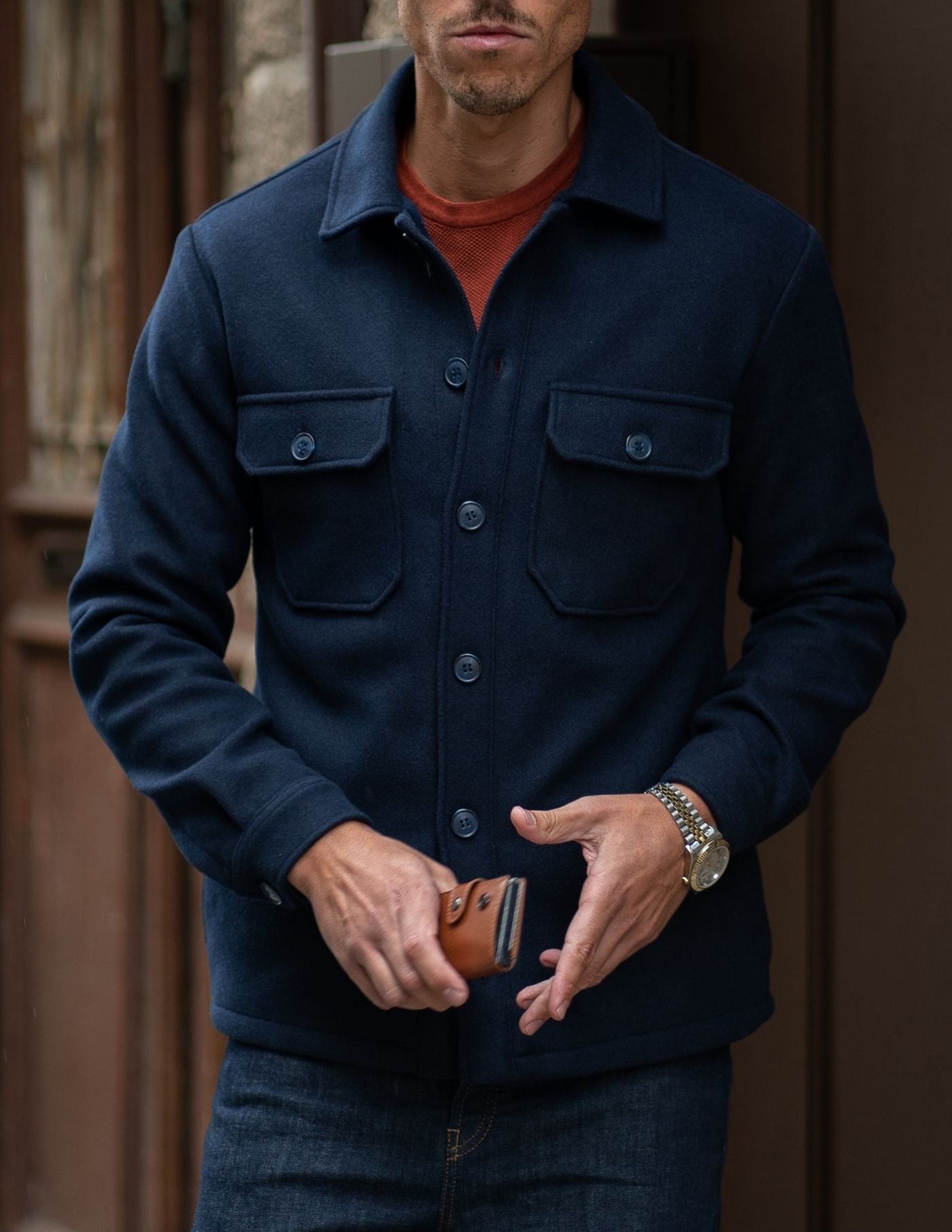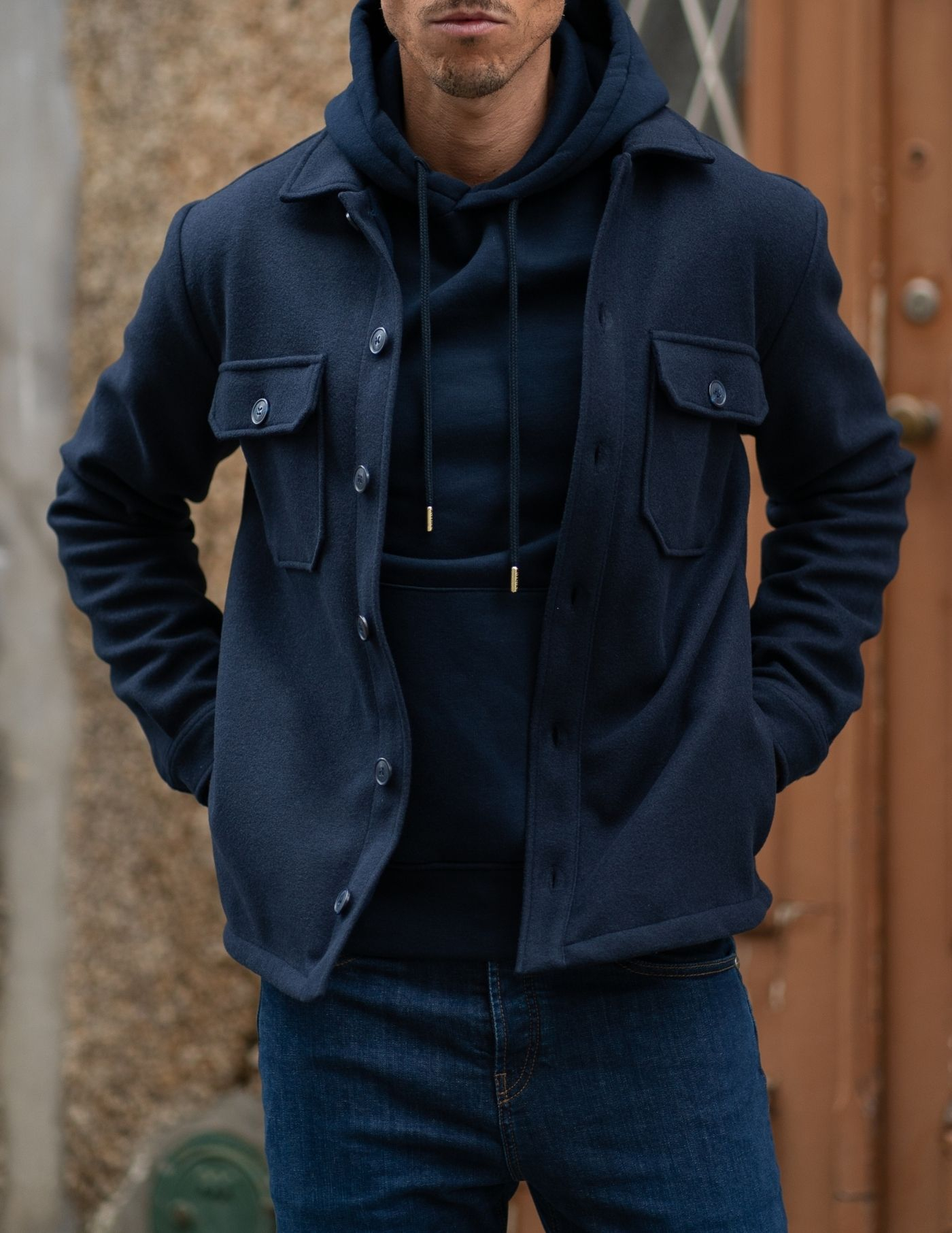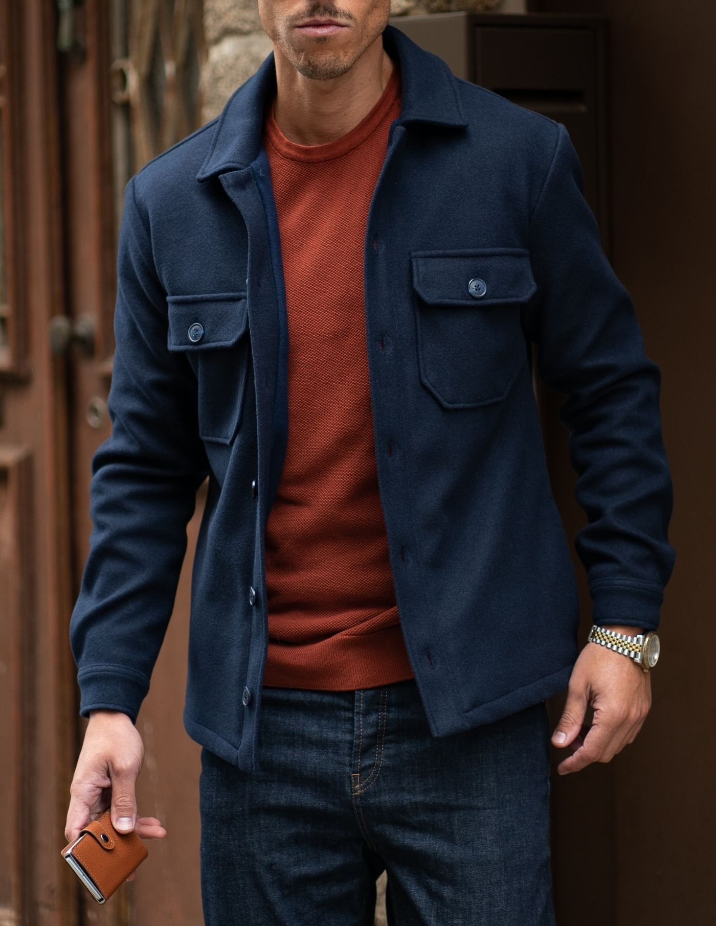 Conforto para os dias mais frios. A peça ideal para um look relaxado e aconchegante. A sobrecamisa é slim fit, leve e quente. A matéria prima é suave ao toque. Não enruga facilmente, mantendo-se elegante ao longo do dia. Ideal para combinar com uma malha ou t-shirt. Finalizada com dois bolsos tipo camisa, dois bolsos interiores invisíveis e botões azuis.