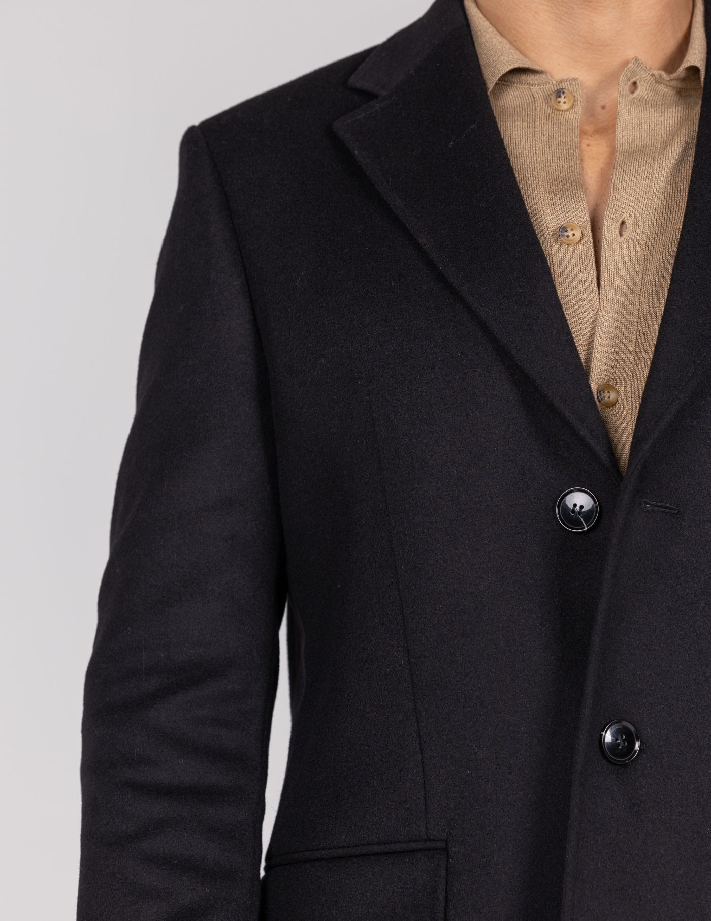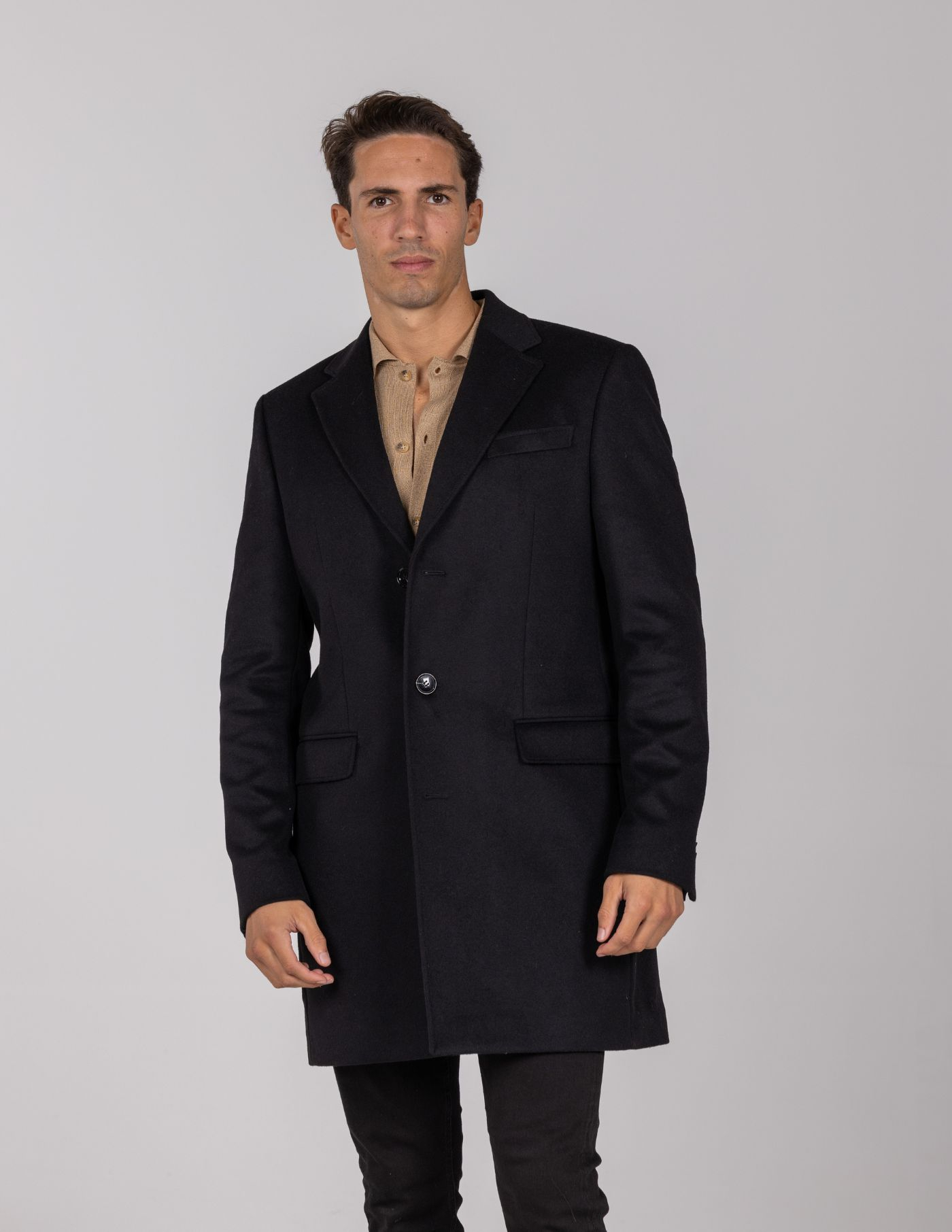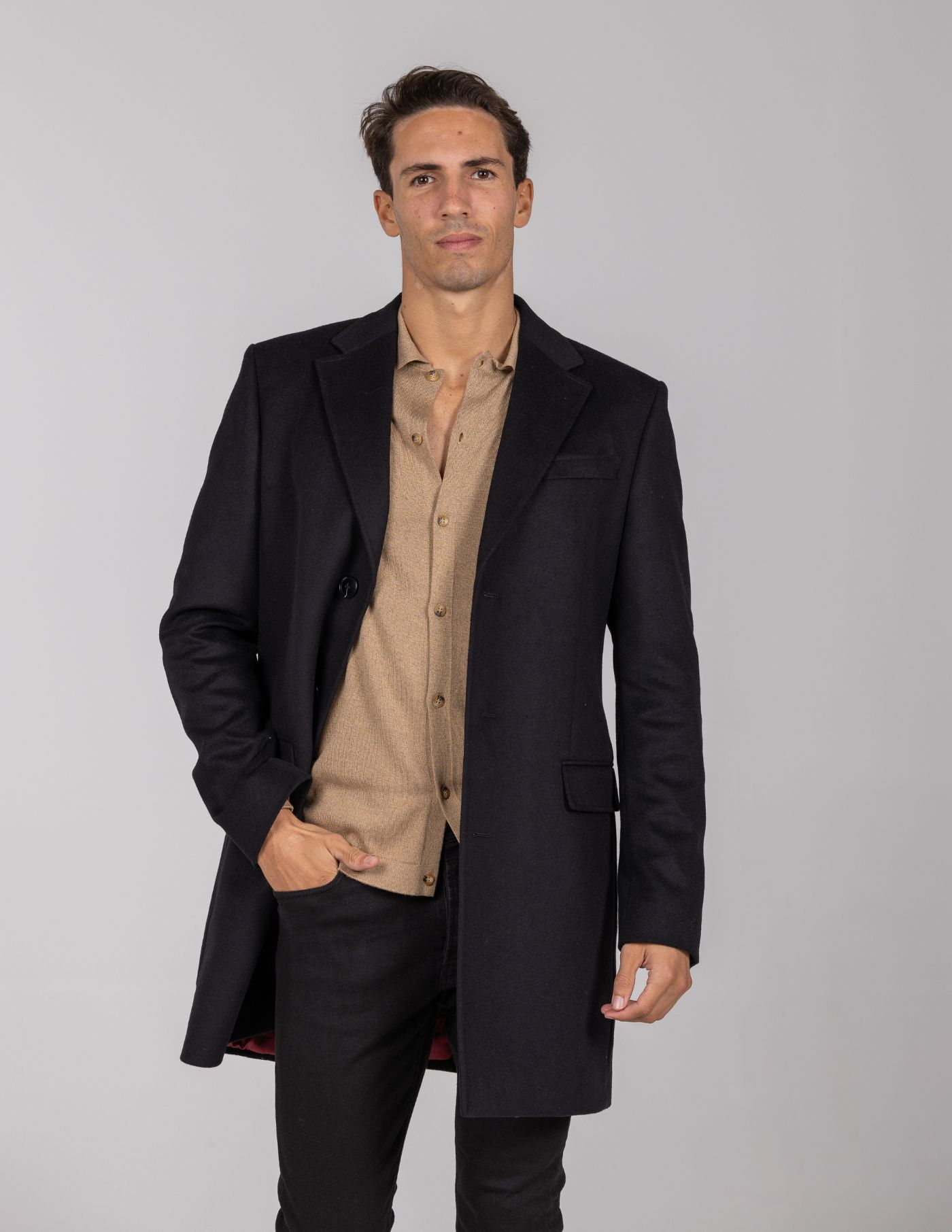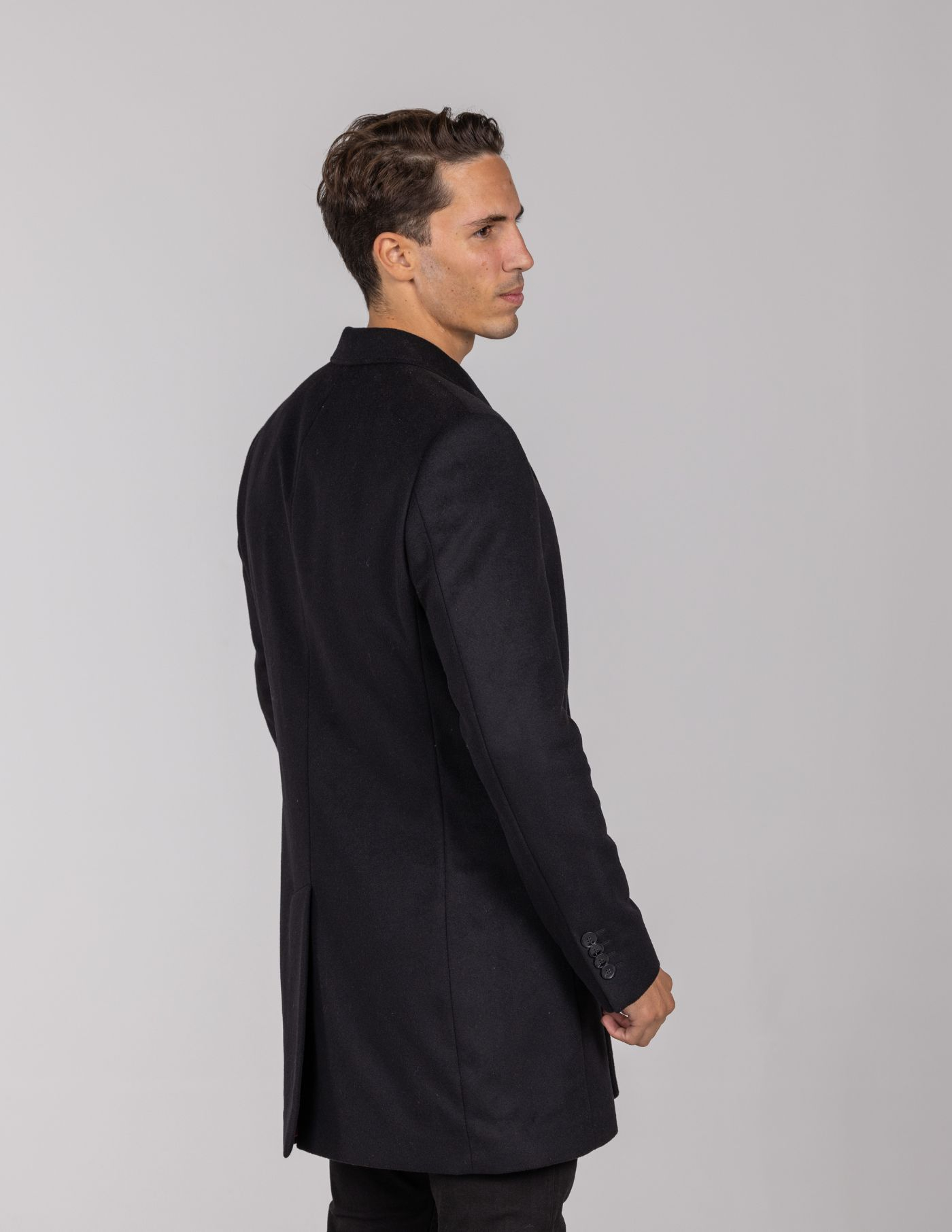 Sobretudo de lã confecionado com materiais de alta qualidade para maior conforto e durabilidade.