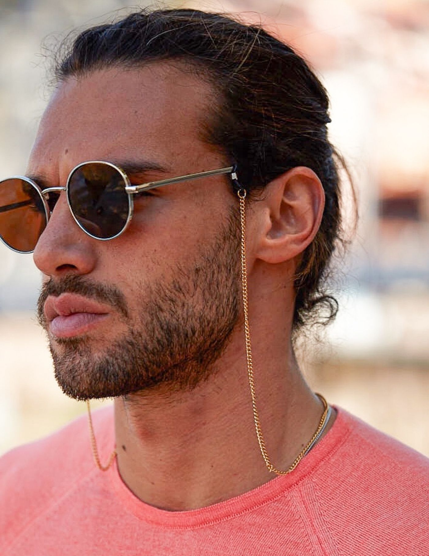 Em tom dourado, a reinterpretação moderna e masculina das correntes de “avó” são úteis e adicionam caráter ao look. Resistentes e compactas combinam com qualquer estilo, em qualquer ocasião.