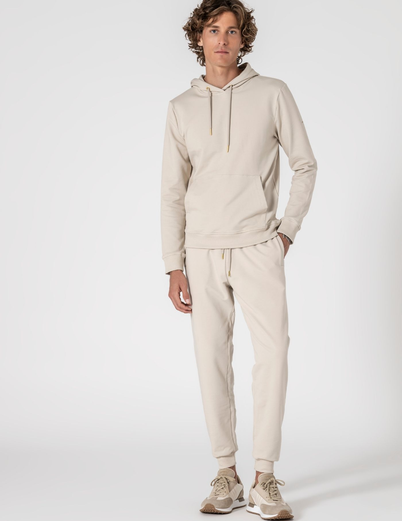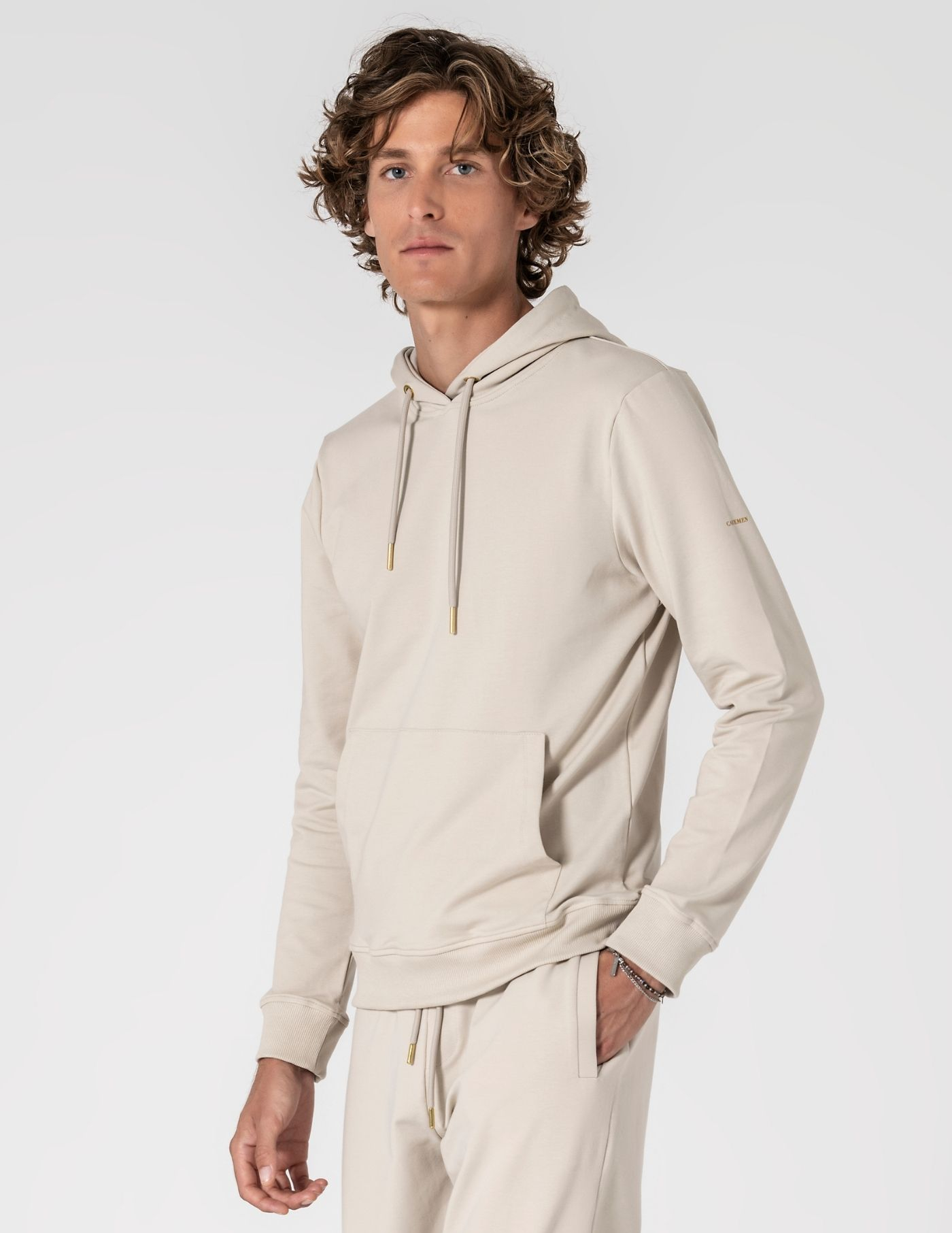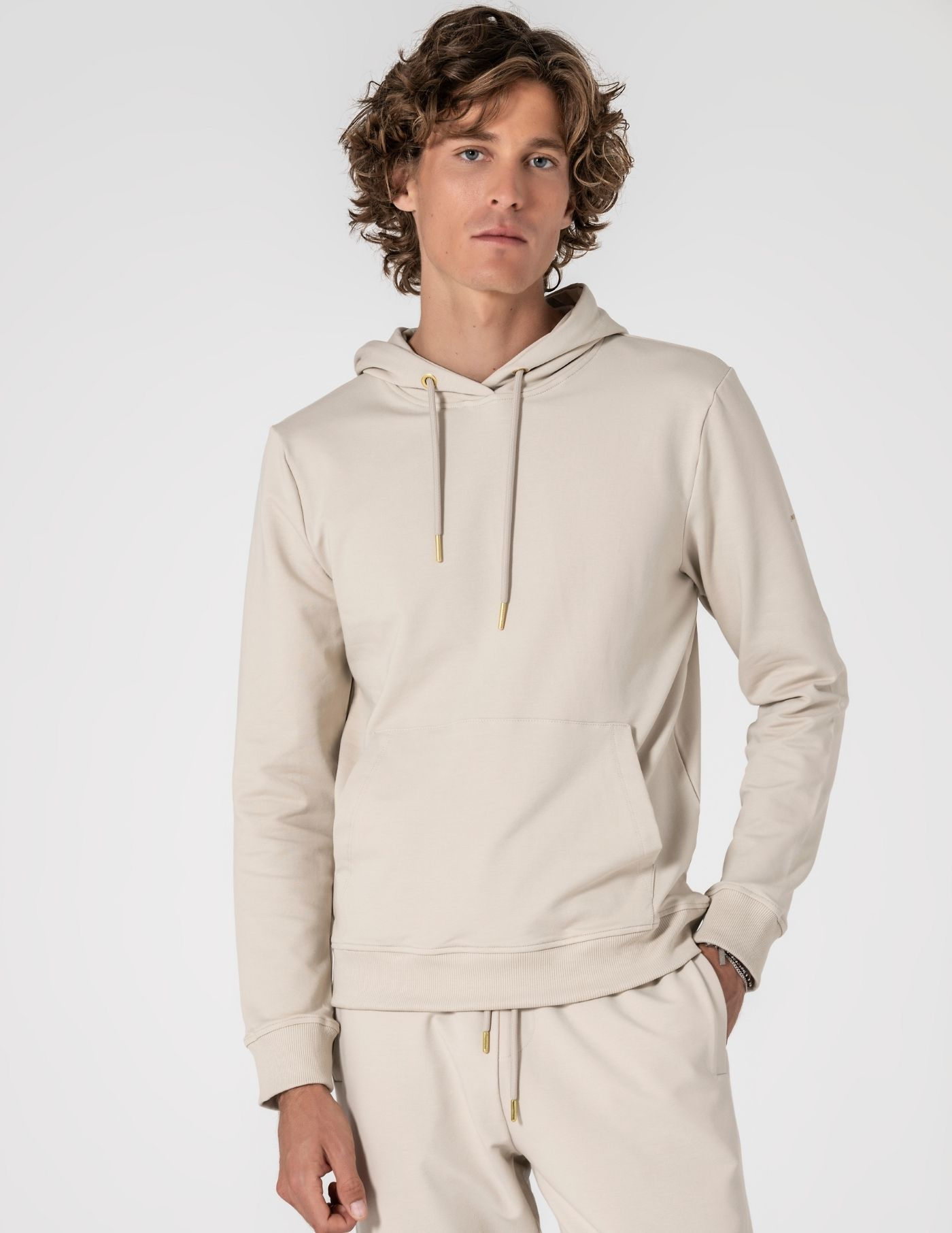 A peça essencial para um look descontraído e aconchegante. Sweat com capuz bege, confecionada em algodão e elastano, garantindo suavidade ao toque, elasticidade e conforto ao longo do dia. Totalmente lisa, com bolso frontal, fácil de combinar com sobretudo ou casaco de penas nos dias mais frios.