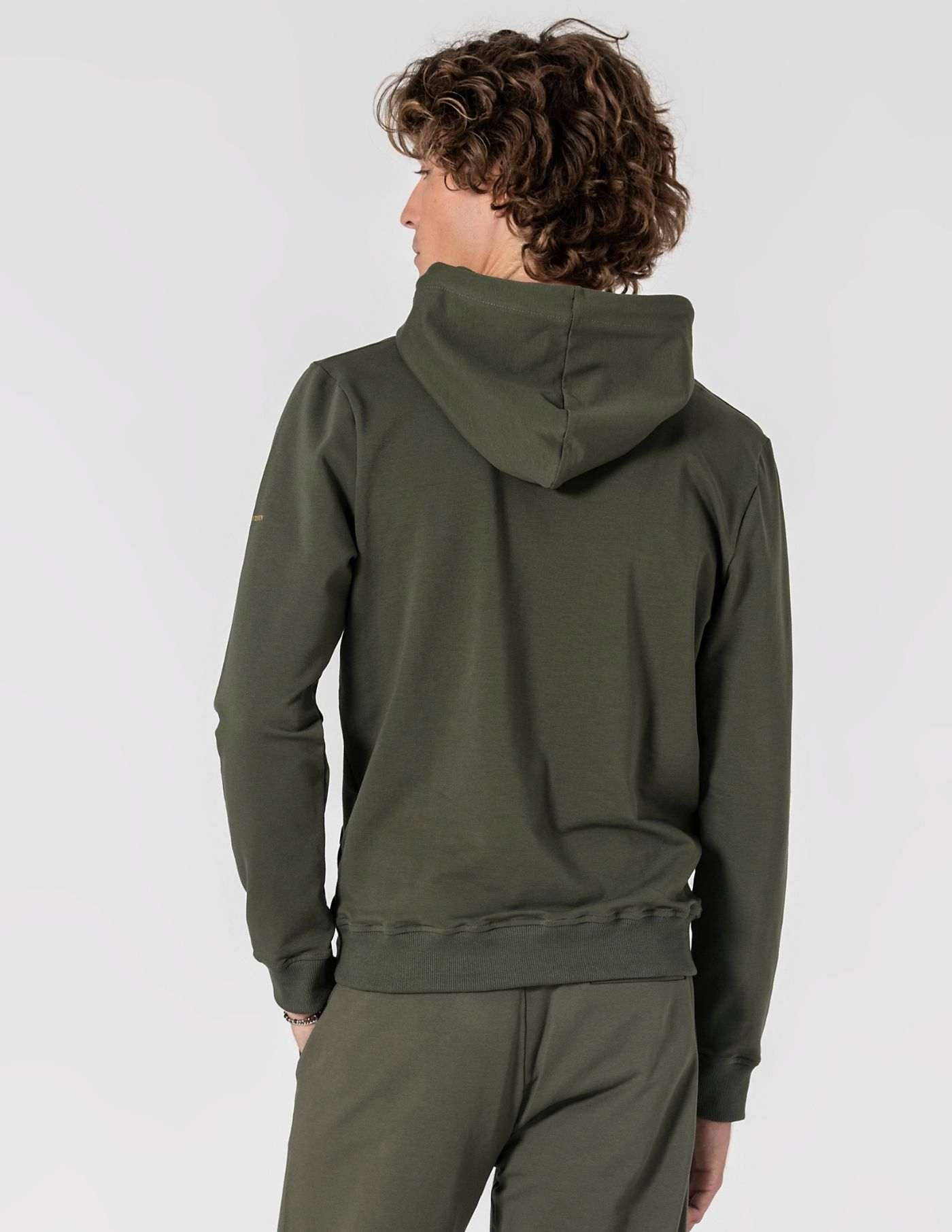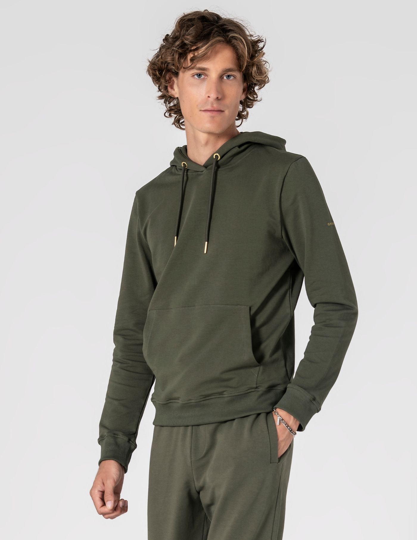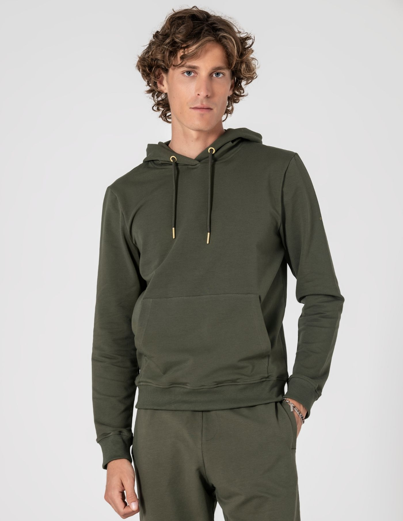A peça essencial para um look descontraído e funcional. Sweat com capuz verde, confecionada em algodão e elastano, garantindo suavidade ao toque, elasticidade e conforto ao longo do dia. Totalmente lisa, com bolso frontal, fácil de combinar com sobretudo ou casaco de penas nos dias mais frios.