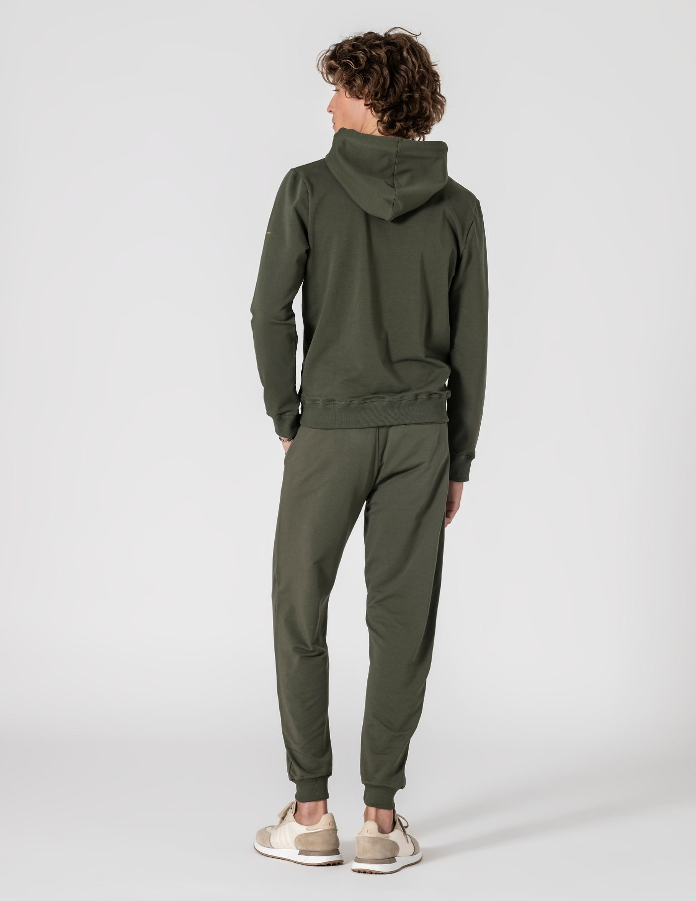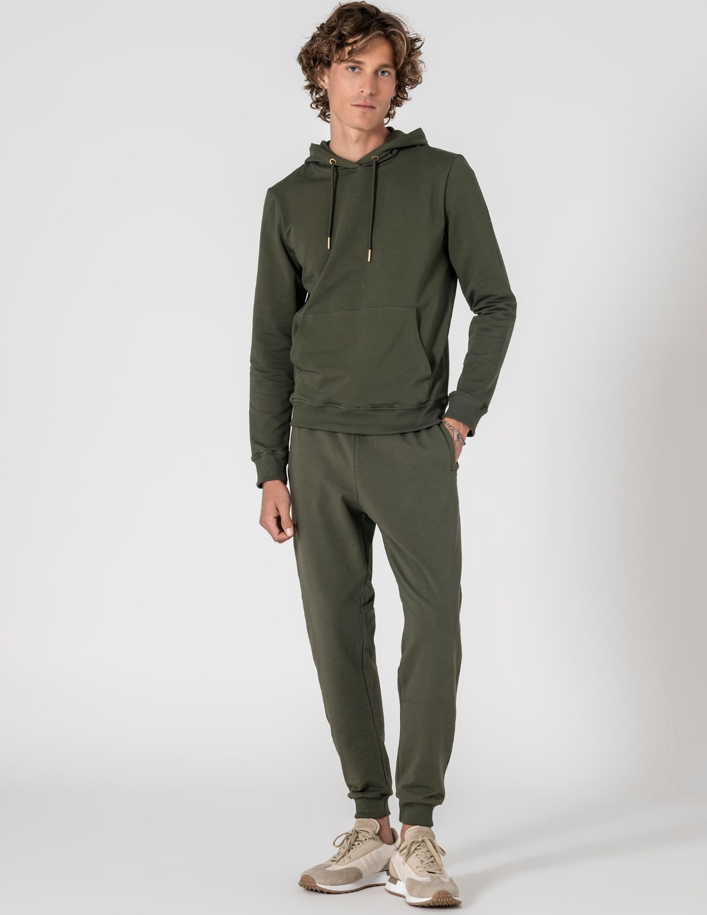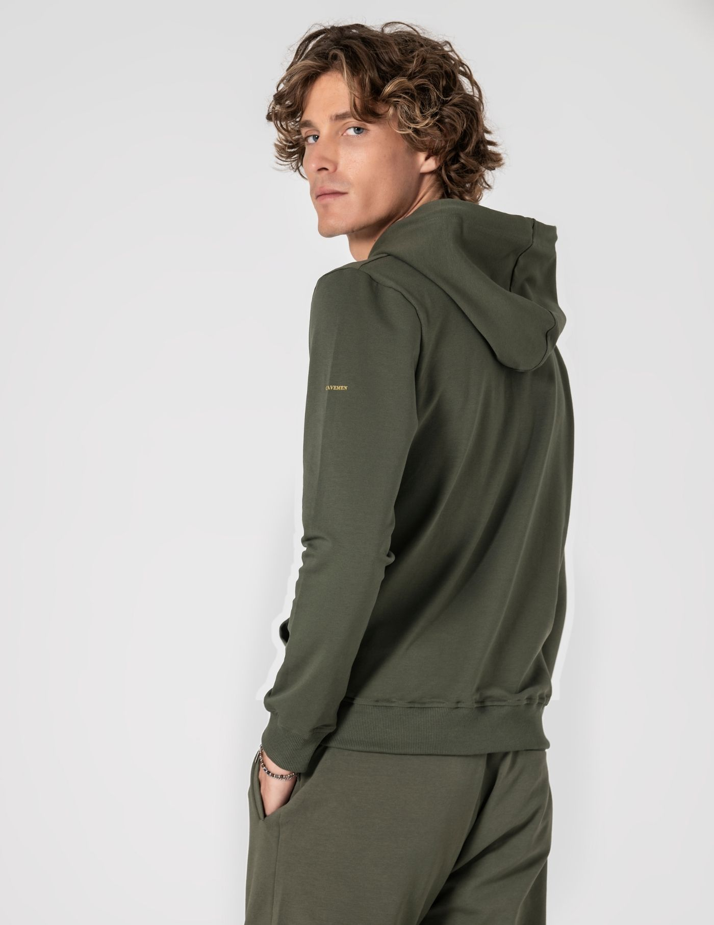 A peça essencial para um look descontraído e funcional. Sweat com capuz verde, confecionada em algodão e elastano, garantindo suavidade ao toque, elasticidade e conforto ao longo do dia. Totalmente lisa, com bolso frontal, fácil de combinar com sobretudo ou casaco de penas nos dias mais frios.