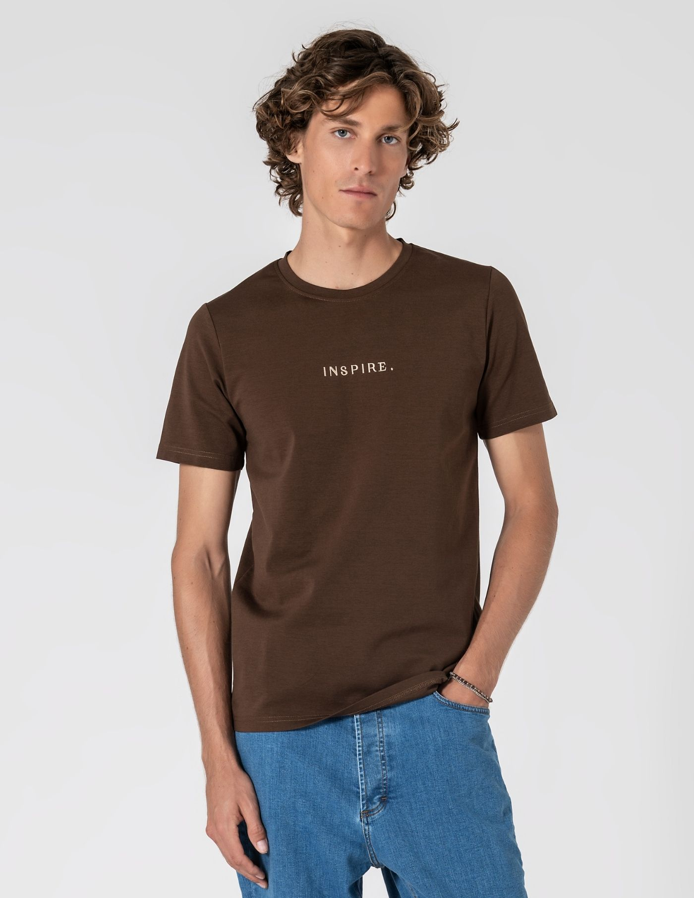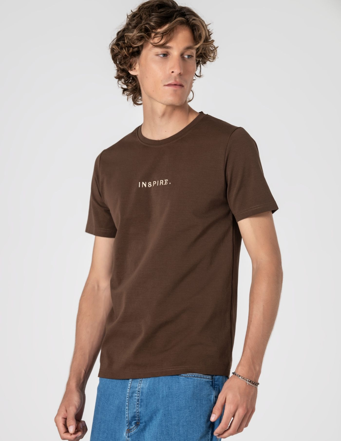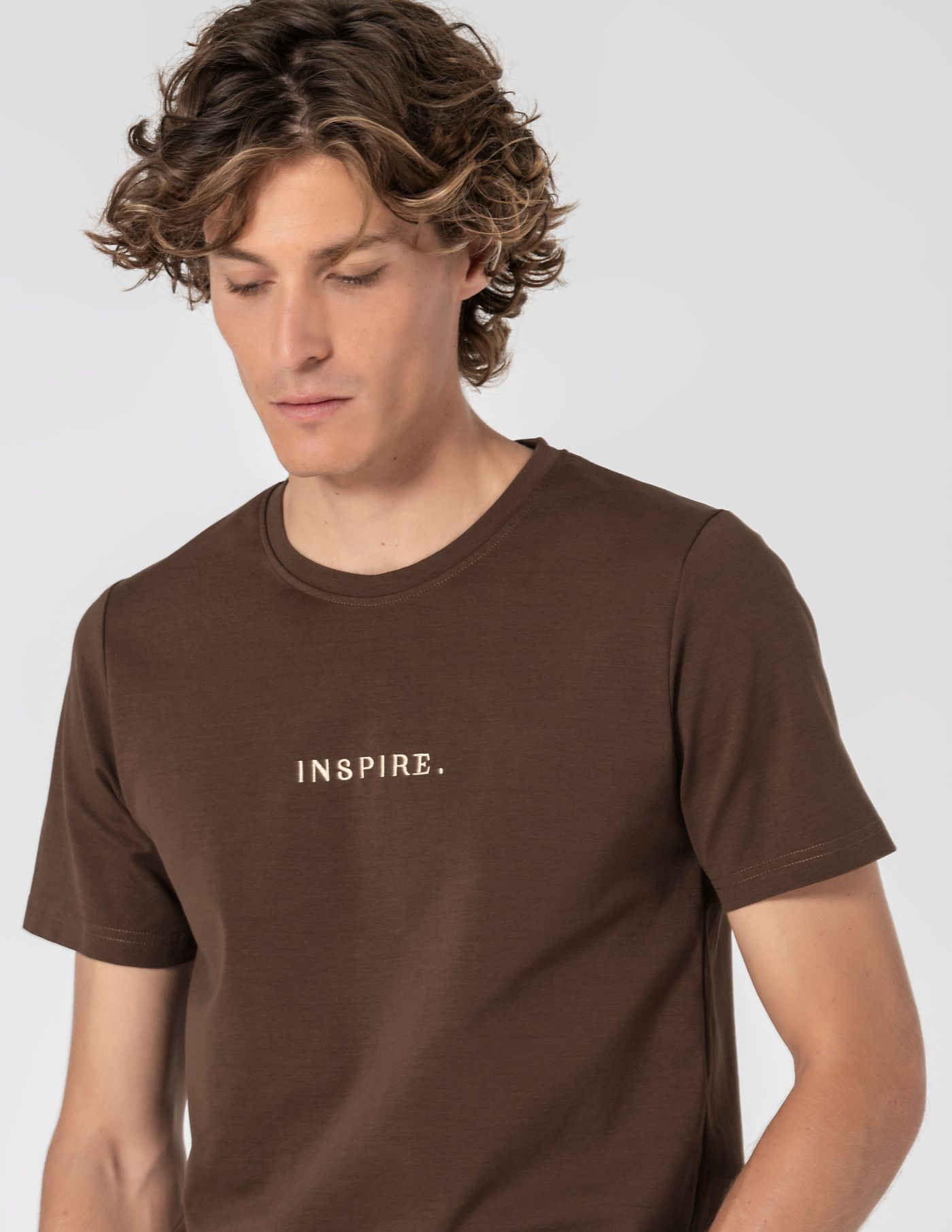 Detalhes: Costura "INSPIRE" (letras em dourado)