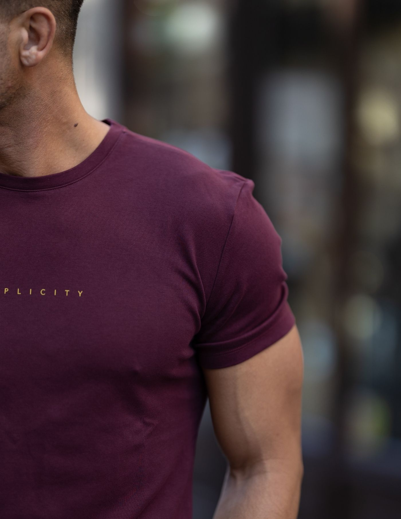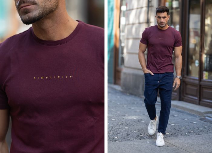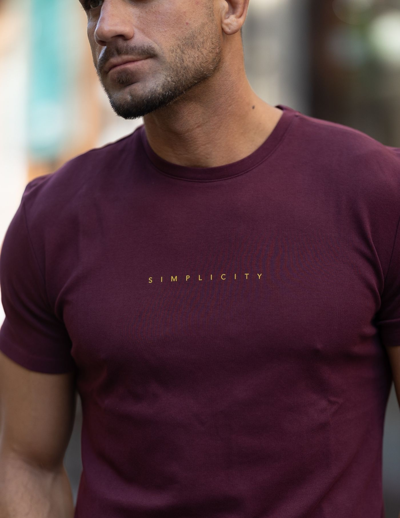 Detalhes: Estampado "Simplicity" (letras douradas)