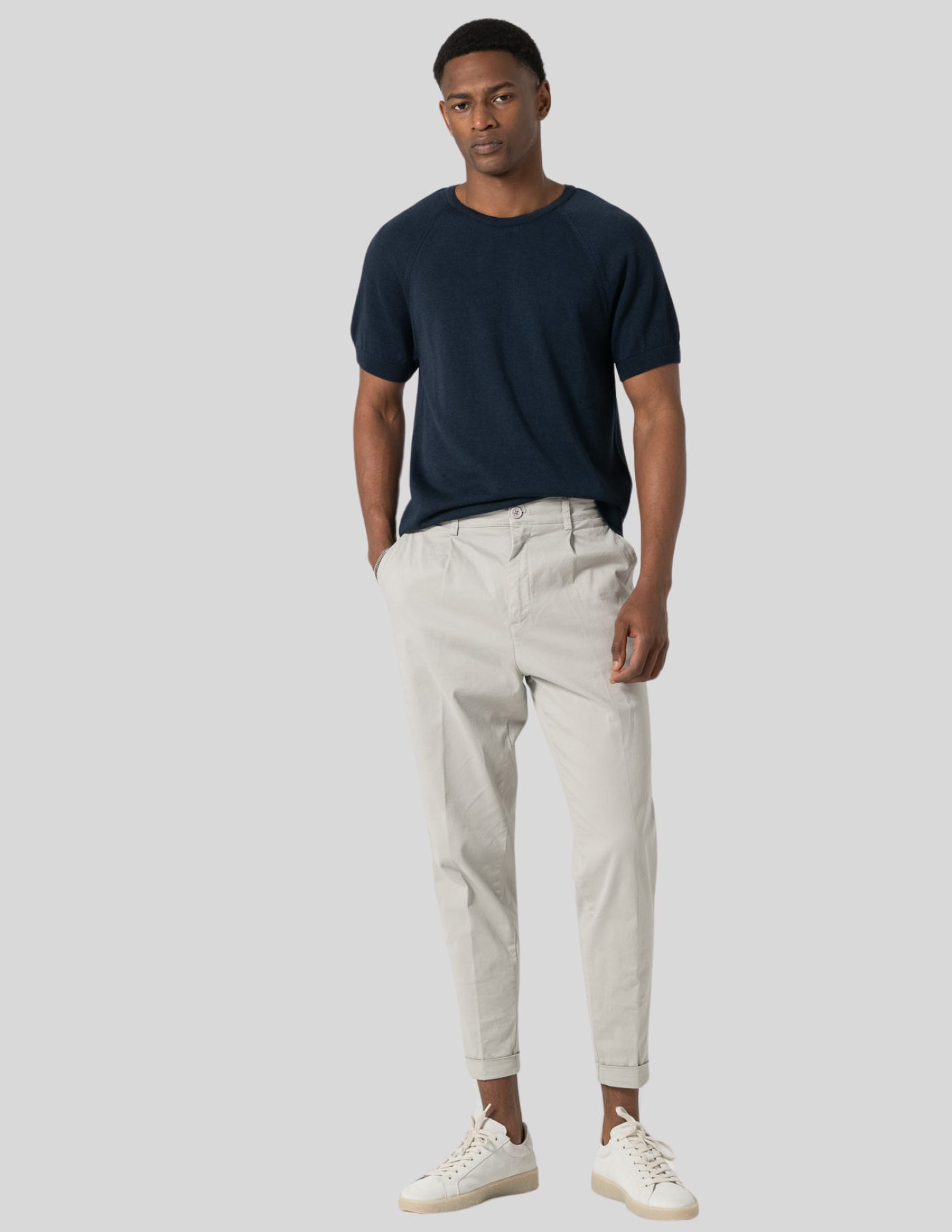 Suave ao toque, respirável e naturalmente elegante, adapta-se aos dias quentes com discrição e sofisticação.