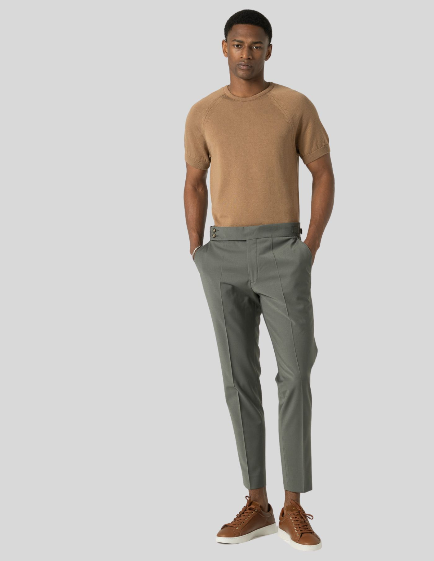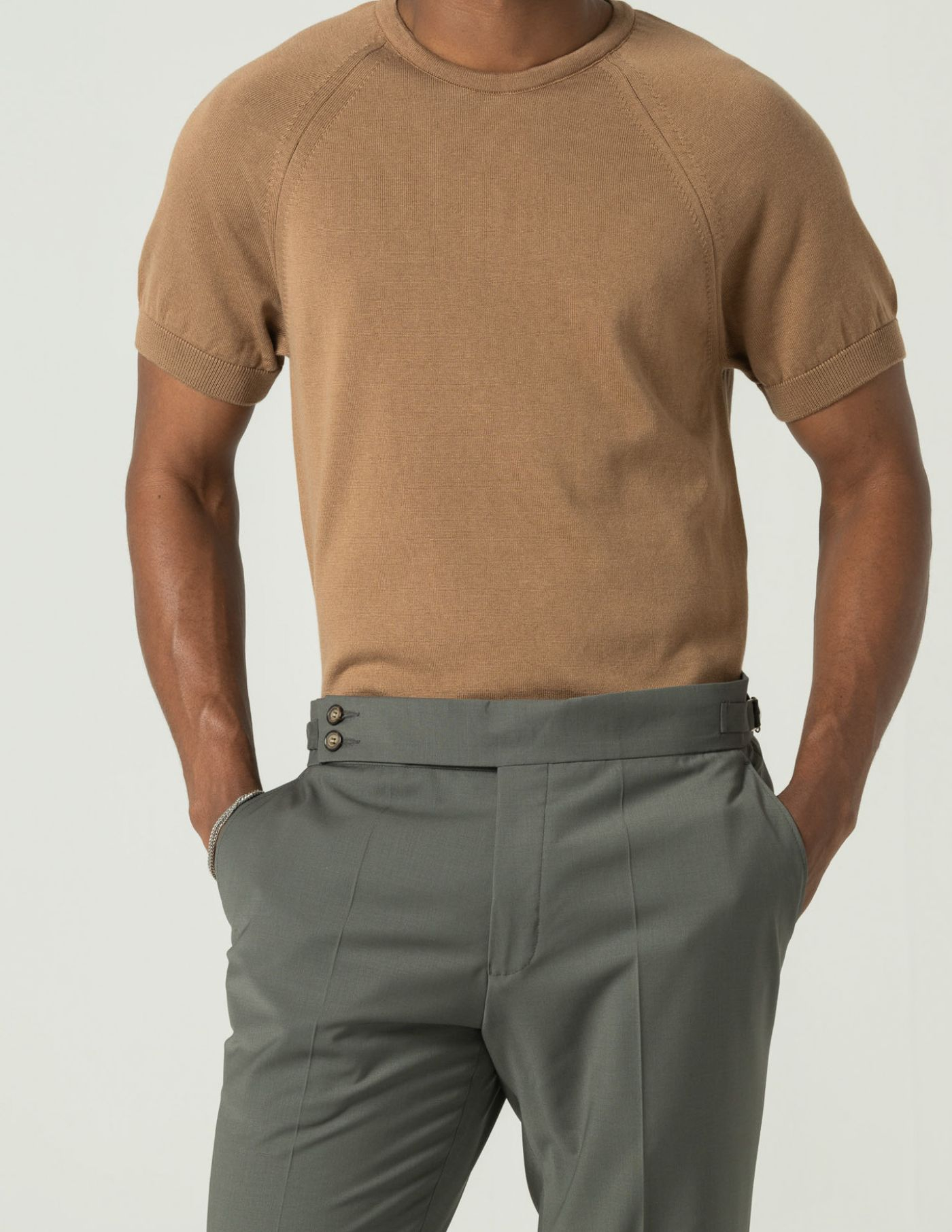 A estrutura em tricot confere textura e profundidade, mantendo um visual cuidado sem esforço.