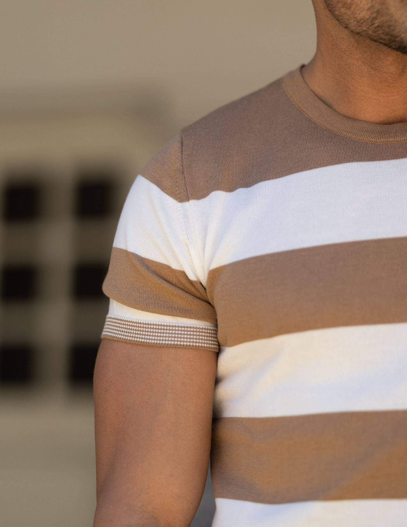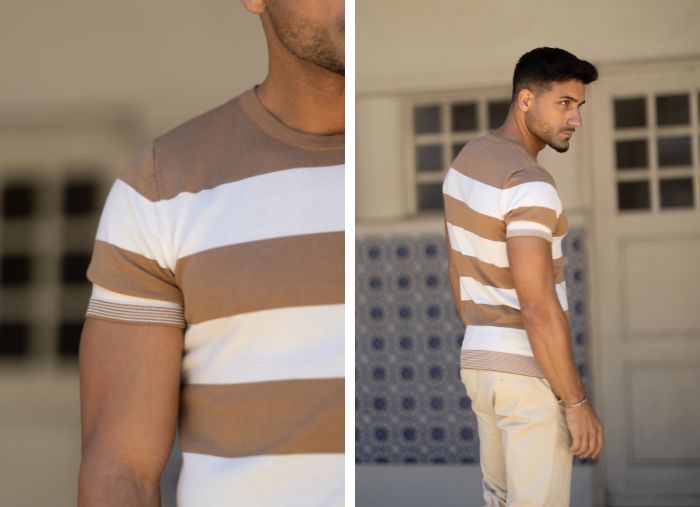 Detalhe: Riscas finas na manga e base